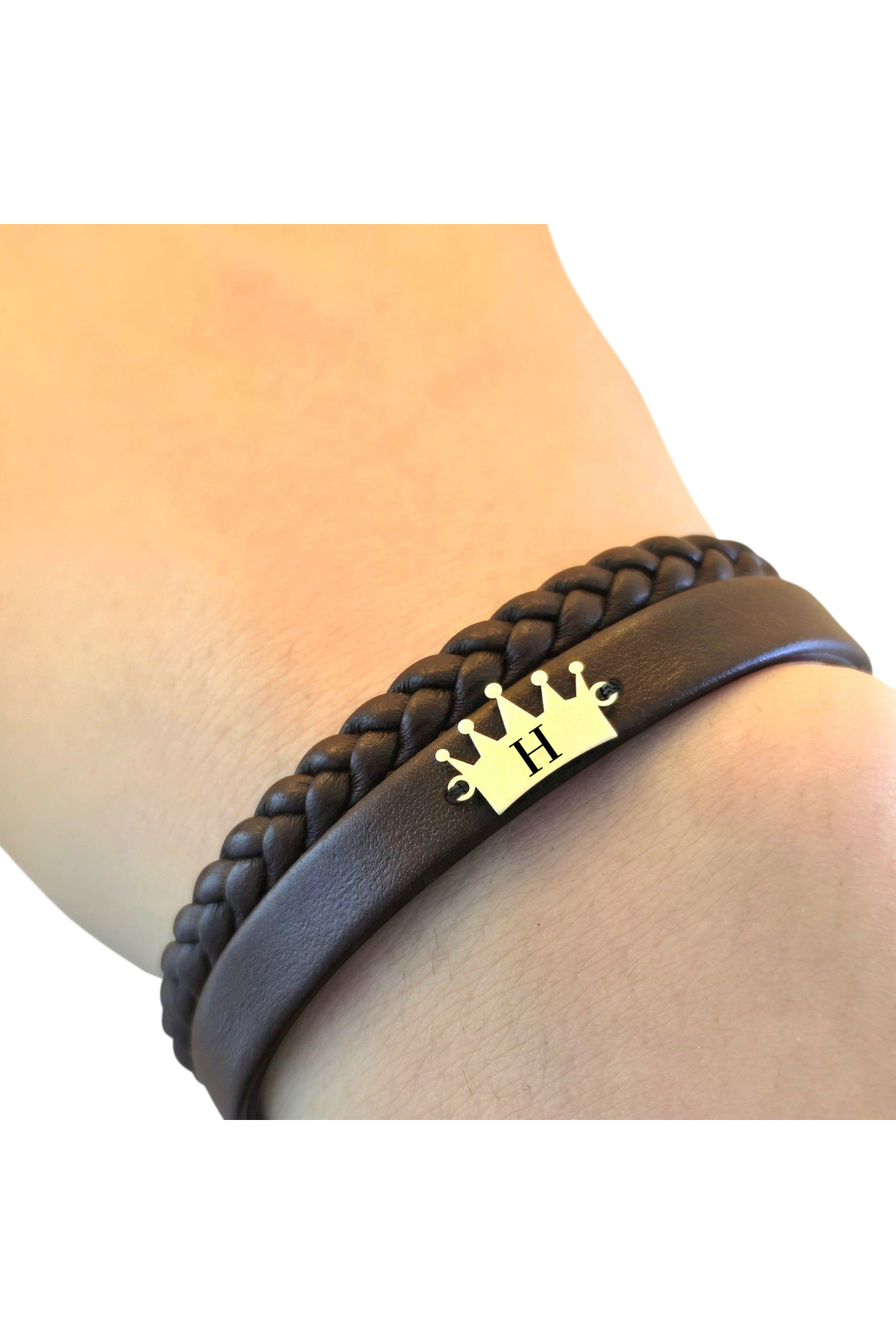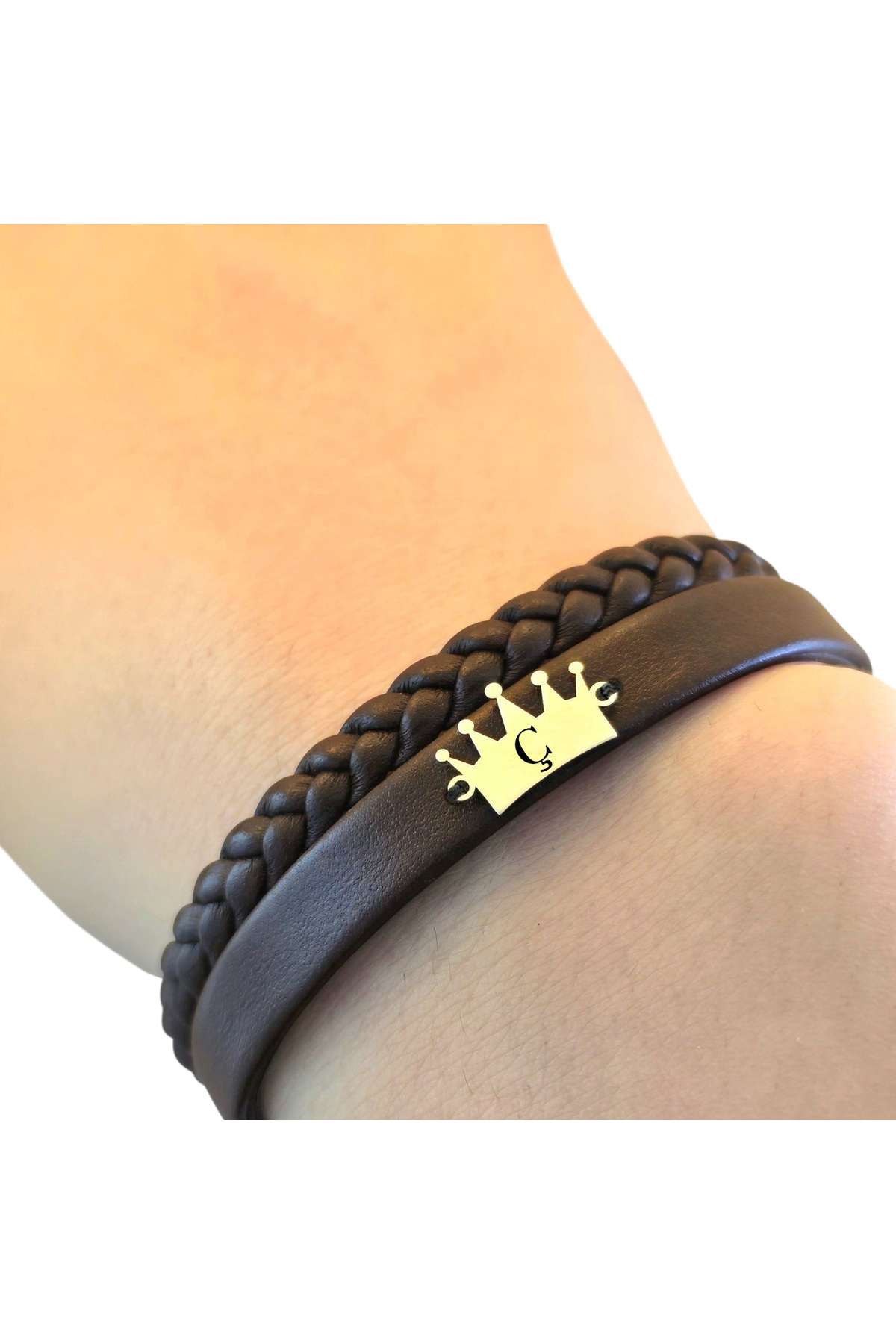14 Ayar Plakalı Altın O Harfine Özel Koyu Kahverengi Derili Taç Motifli Hediye Bileklik-679 14 Ayar Plakalı Altın O Harfine Özel Koyu Kahverengi Derili Taç Motifli Hediye Bileklik-679 679-kdtdk-fbfg-MO2 22 cm