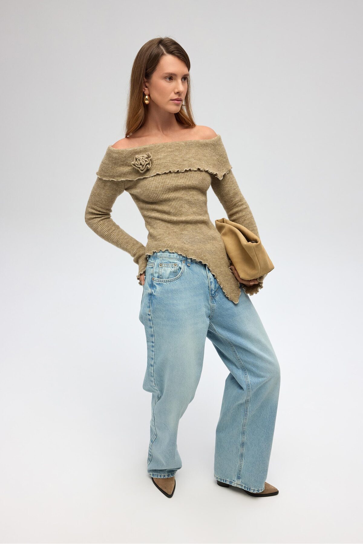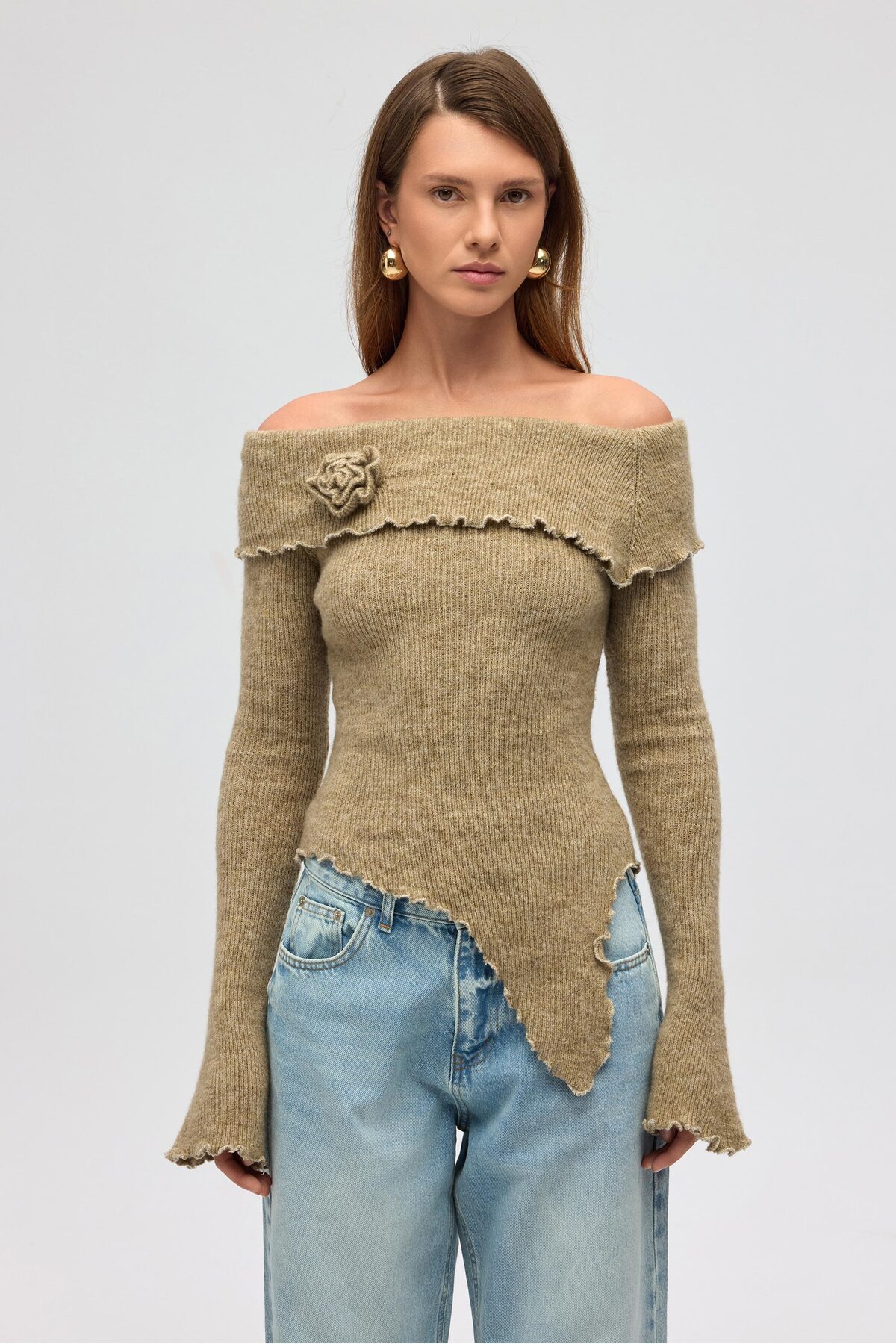 Casica Carmen Yaka Vizon Triko Kazak Casica Carmen Yaka Vizon Triko Kazak S06WD018W1 XS-S