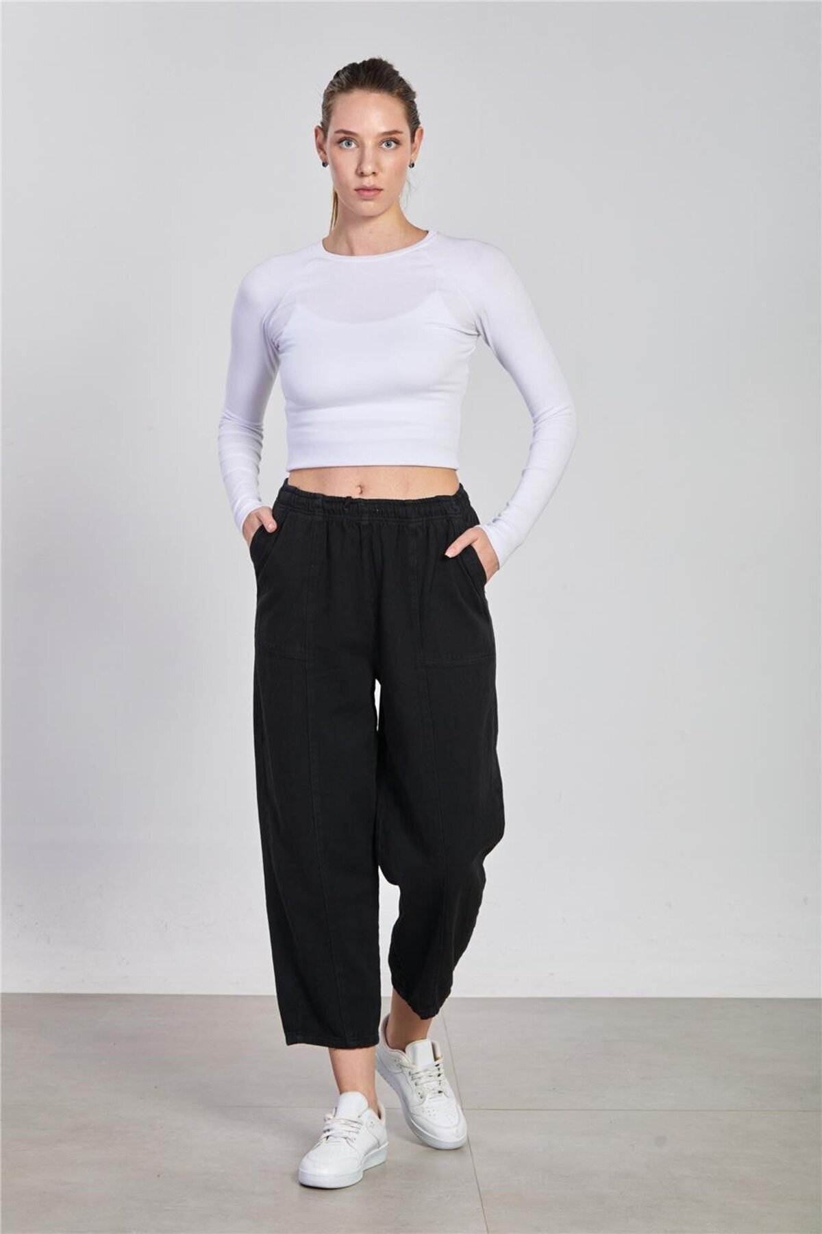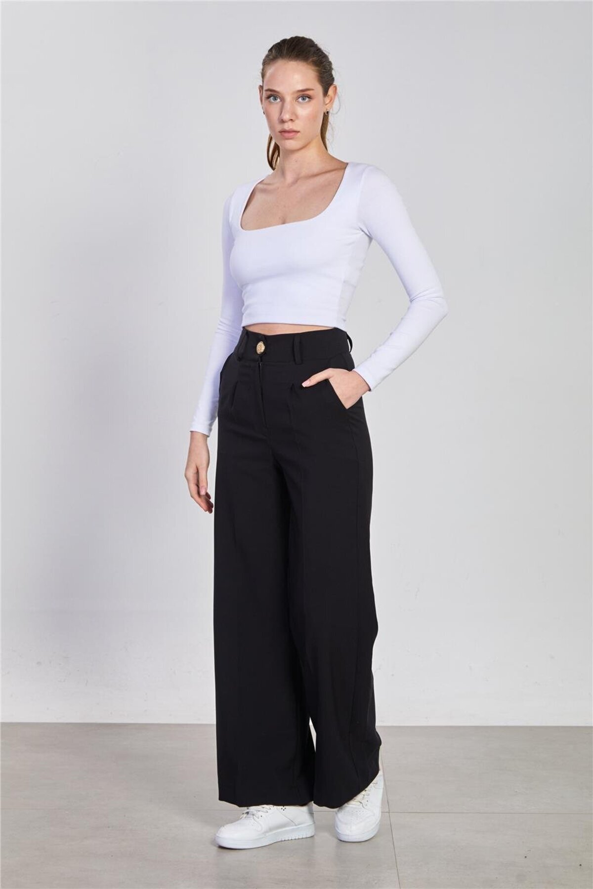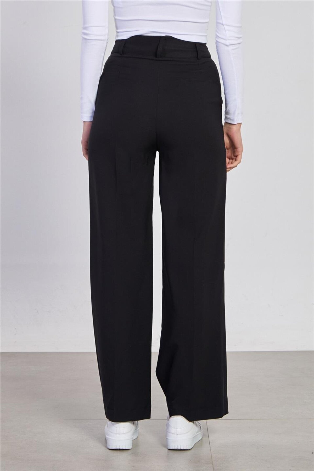 Kadın Önü Pileli Palazzo Kumaş Pantolon - Siyah Kadın Önü Pileli Palazzo Kumaş Pantolon - Siyah 381-25NS010 XL