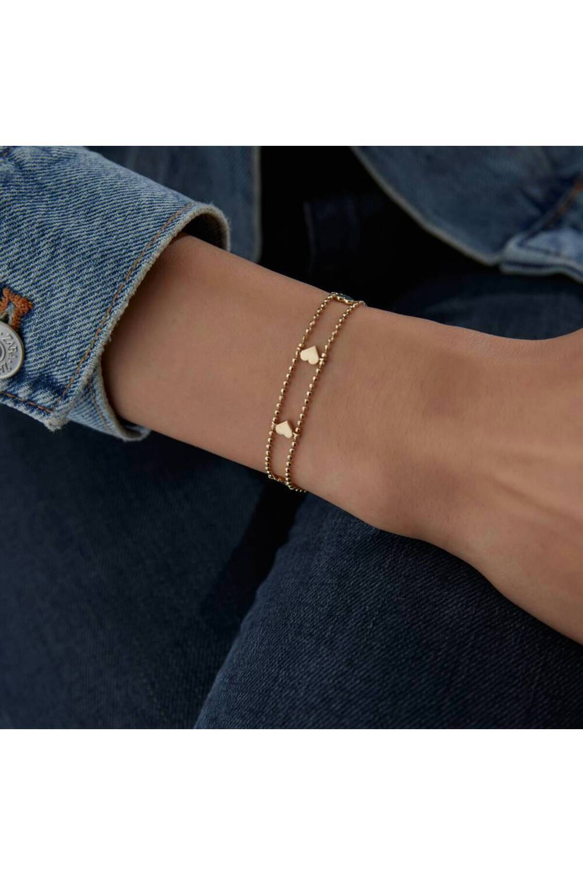 Altın Kalpli İkili Top Zincir Bileklik Altın Kalpli İkili Top Zincir Bileklik BL23656 18 - 19