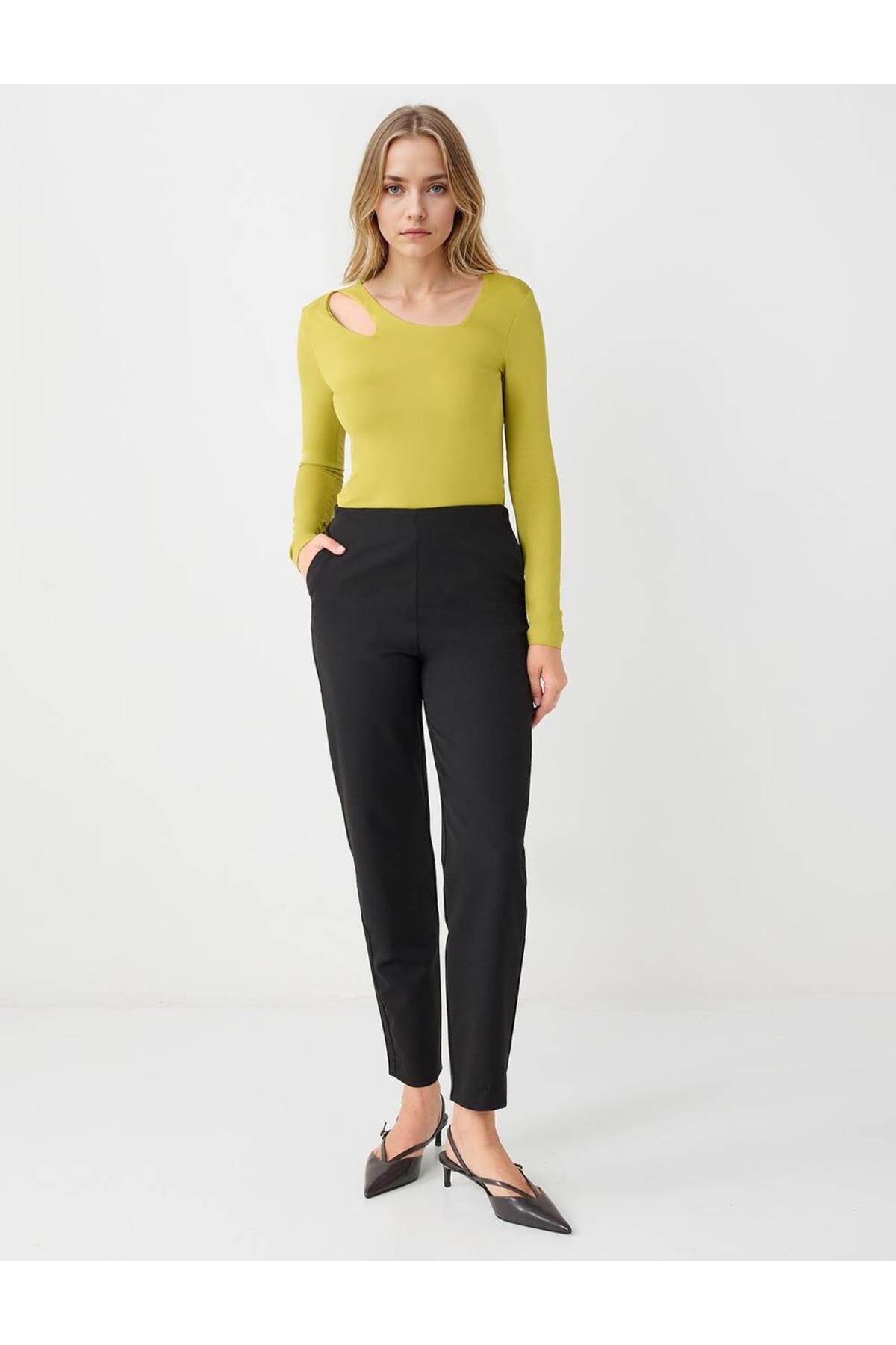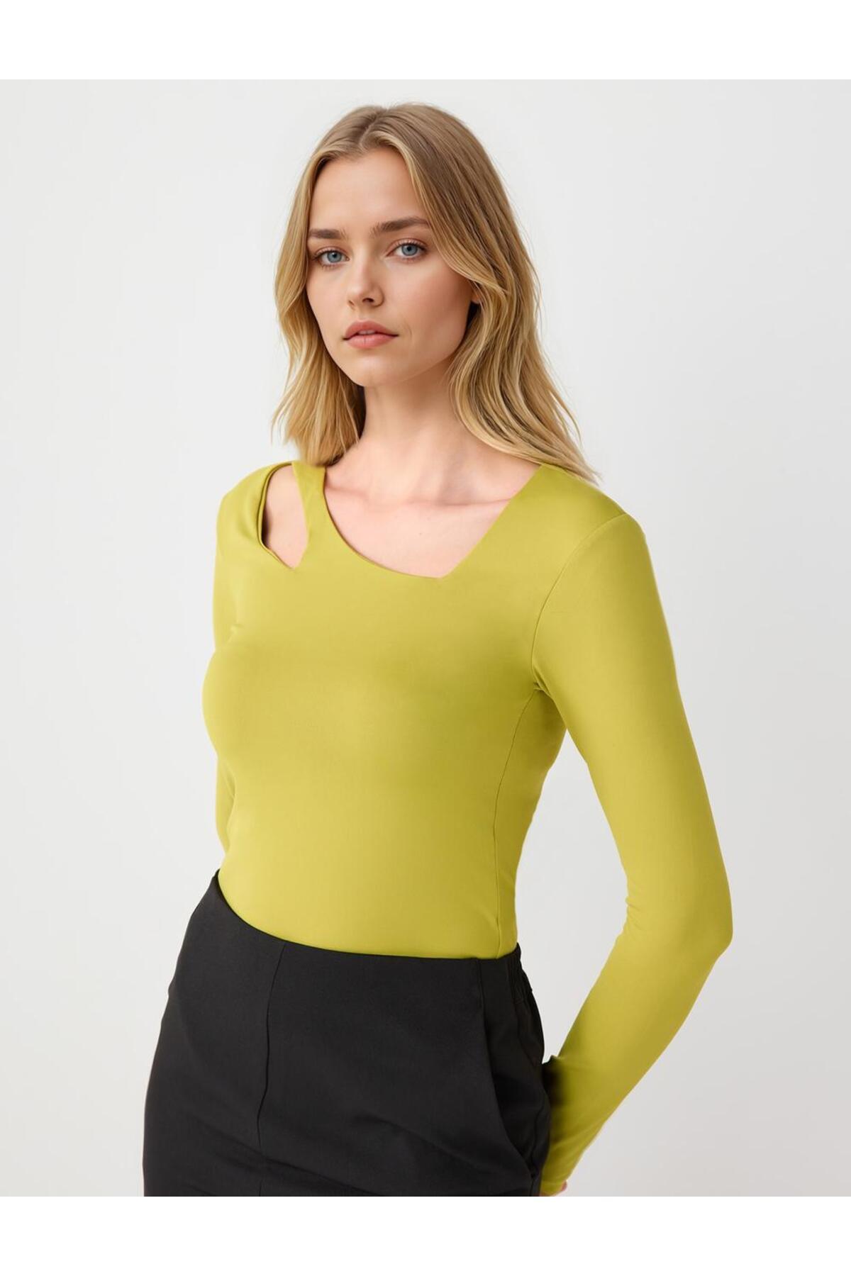 Yağ Yeşili Dar Kesim Uzun Kollu Asimetrik Yaka Örme Bluz Yağ Yeşili Dar Kesim Uzun Kollu Asimetrik Yaka Örme Bluz 5WW035637 XL