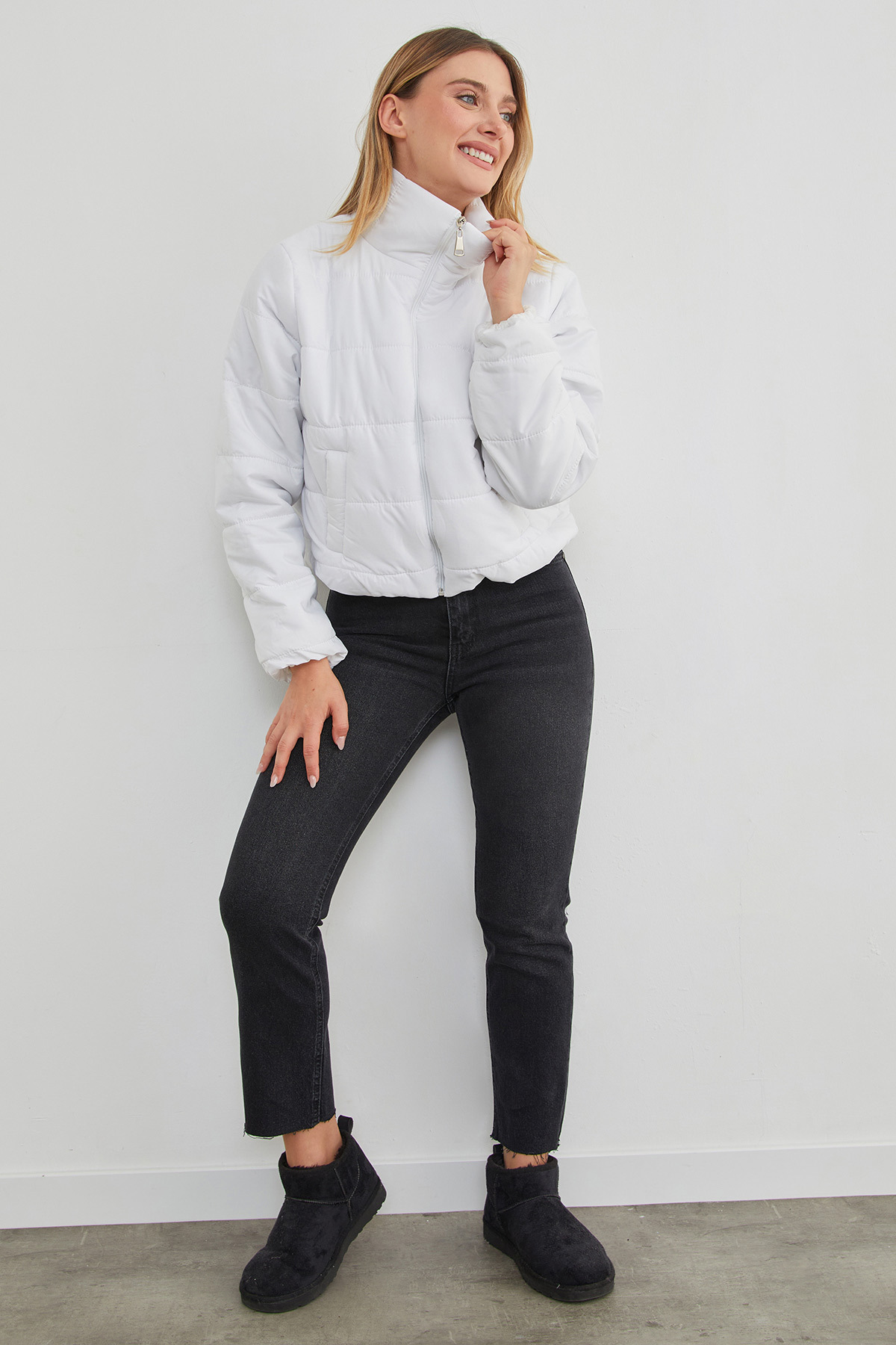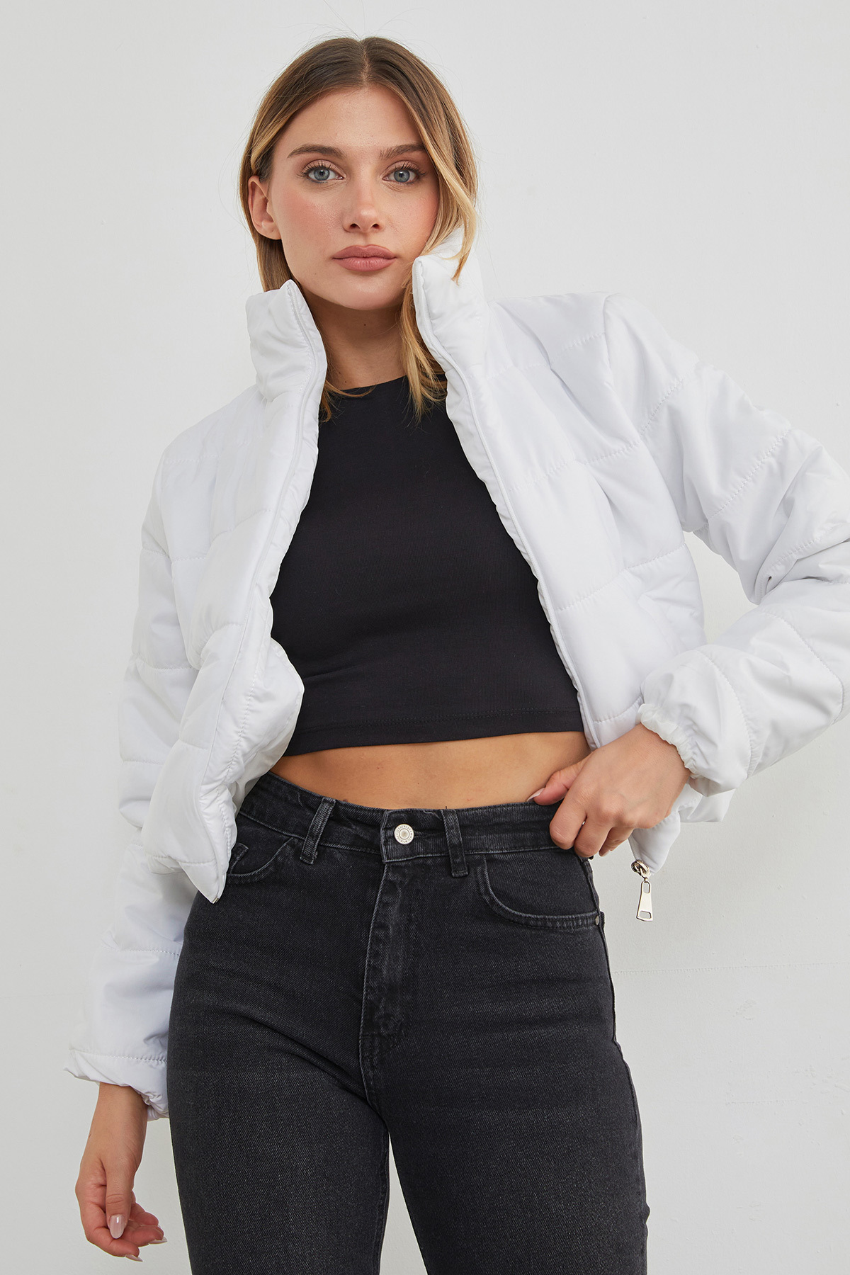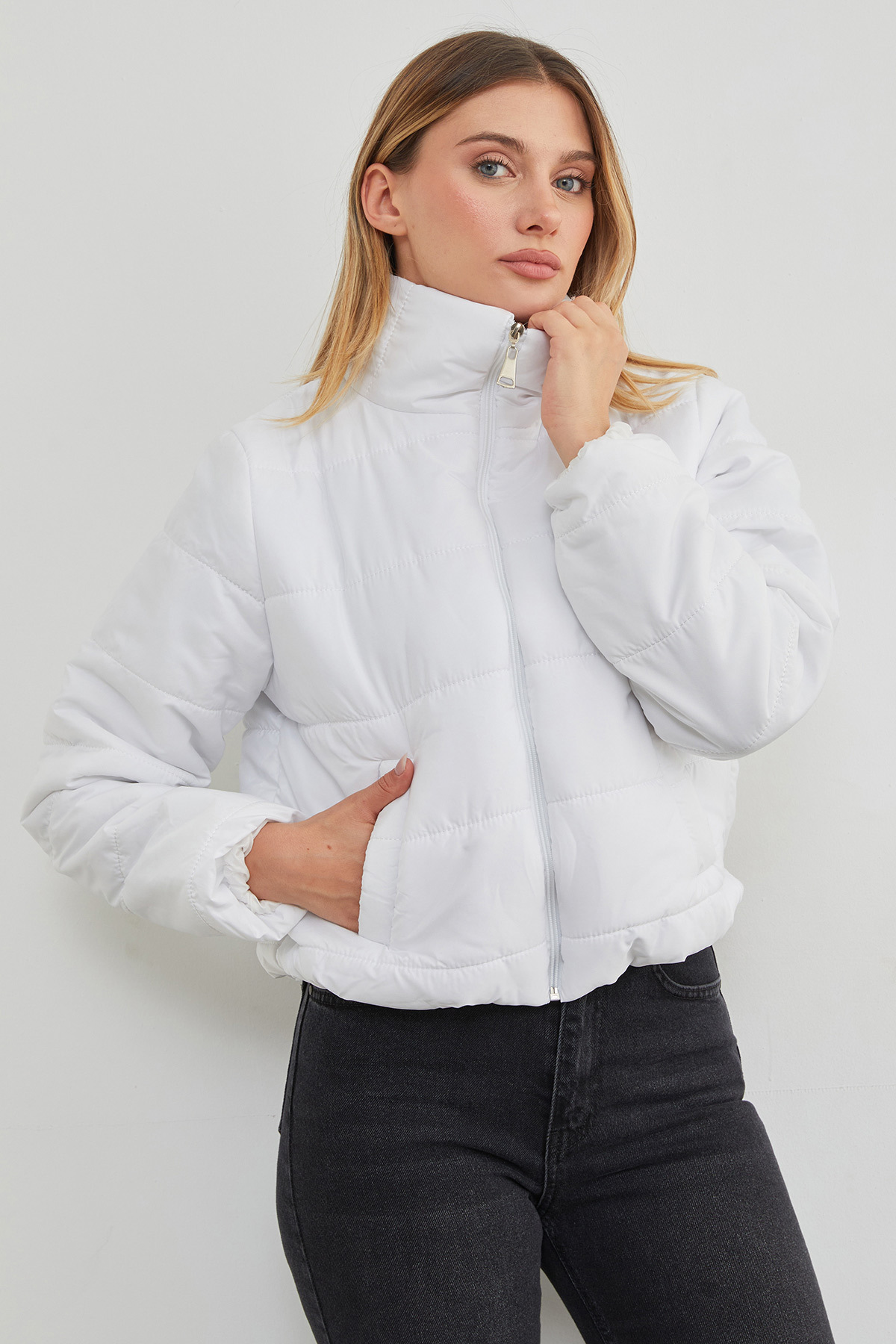 Beli Lastikli Kısa Şişme Mont Beli Lastikli Kısa Şişme Mont 23KGB6197175573 L