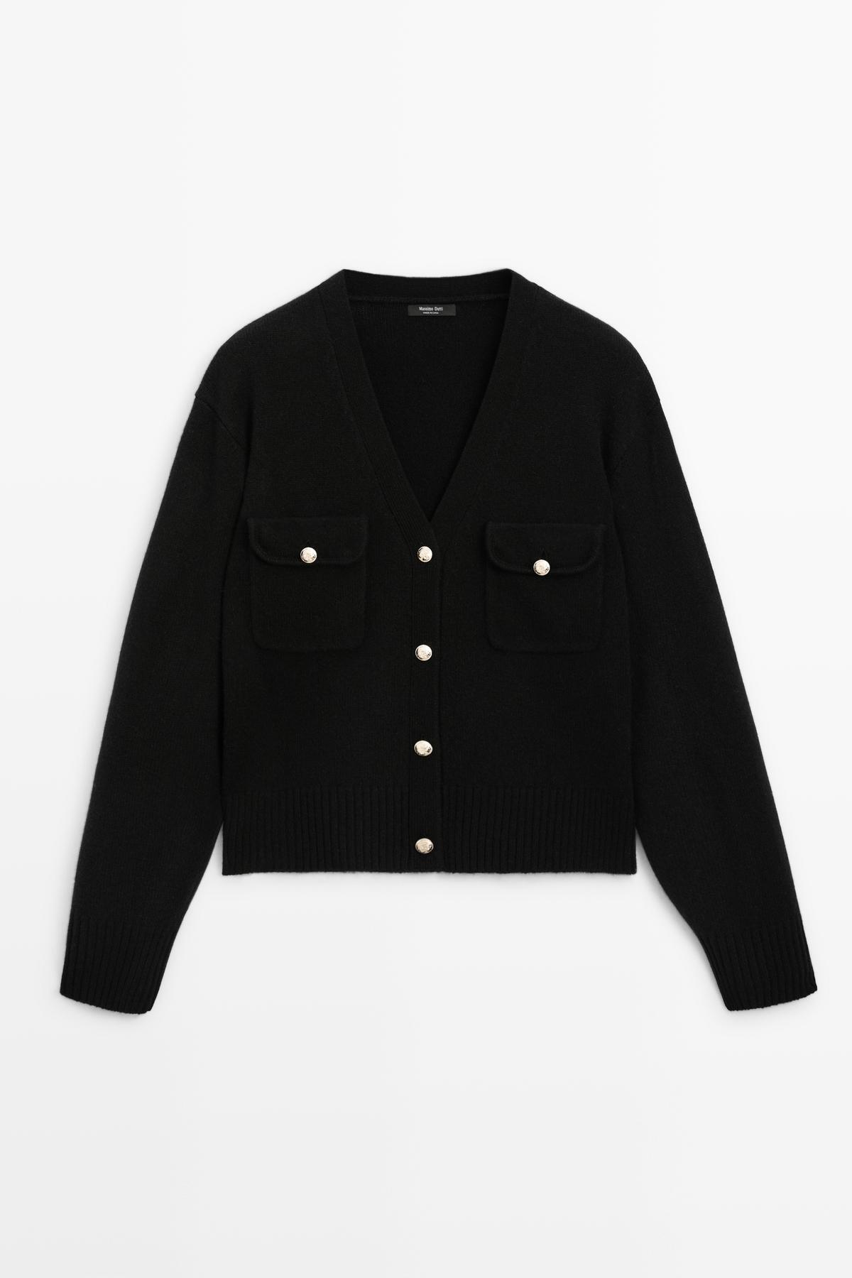 Dore düğmeli V yaka triko hırka Dore düğmeli V yaka triko hırka 00110779205622593 L