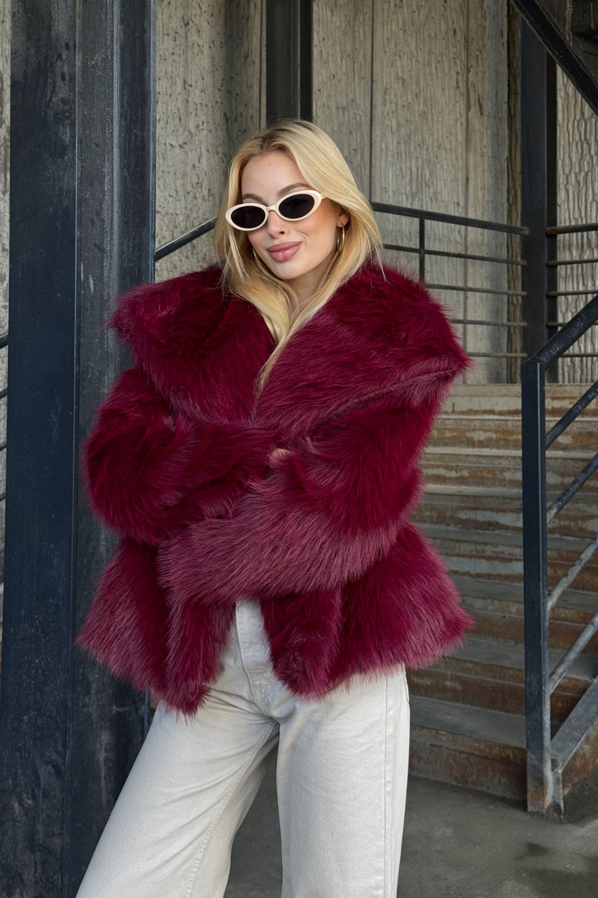 Mürdüm Suni Kürk Premium Peluş Ceket BCVL-25V218 Mürdüm Suni Kürk Premium Peluş Ceket BCVL-25V218 42