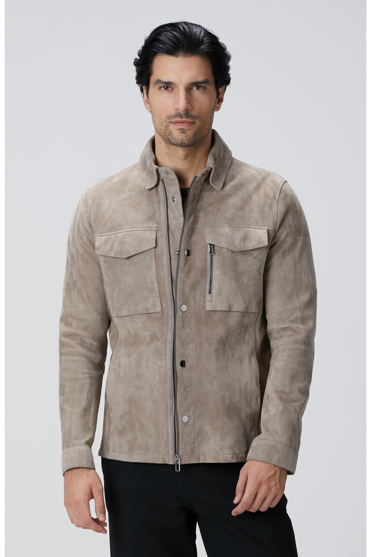 Fermuarlı Kapaklı Cepli Hakiki Deri Sütlü Kahve Erkek Süet Mont Fermuarlı Kapaklı Cepli Hakiki Deri Sütlü Kahve Erkek Süet Mont KEN2412SK 3XL