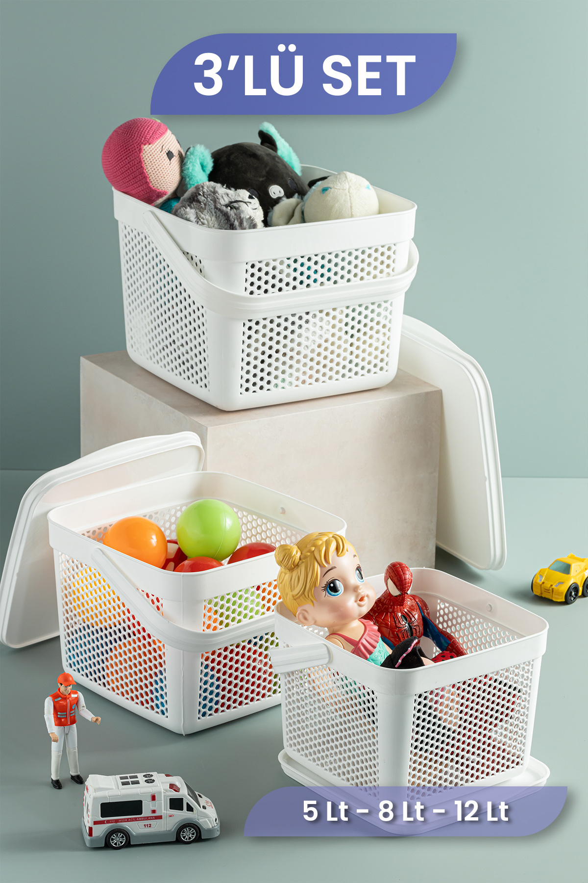 3'lü Set Oyuncak Saklama Kutusu Bebek Çocuk Odası Düzenleyici Çok Amaçlı Organizer 5-8-12Lt Beyaz 3'lü Set Oyuncak Saklama Kutusu Bebek Çocuk Odası Düzenleyici Çok Amaçlı Organizer 5-8-12Lt Beyaz X15 تک سایز