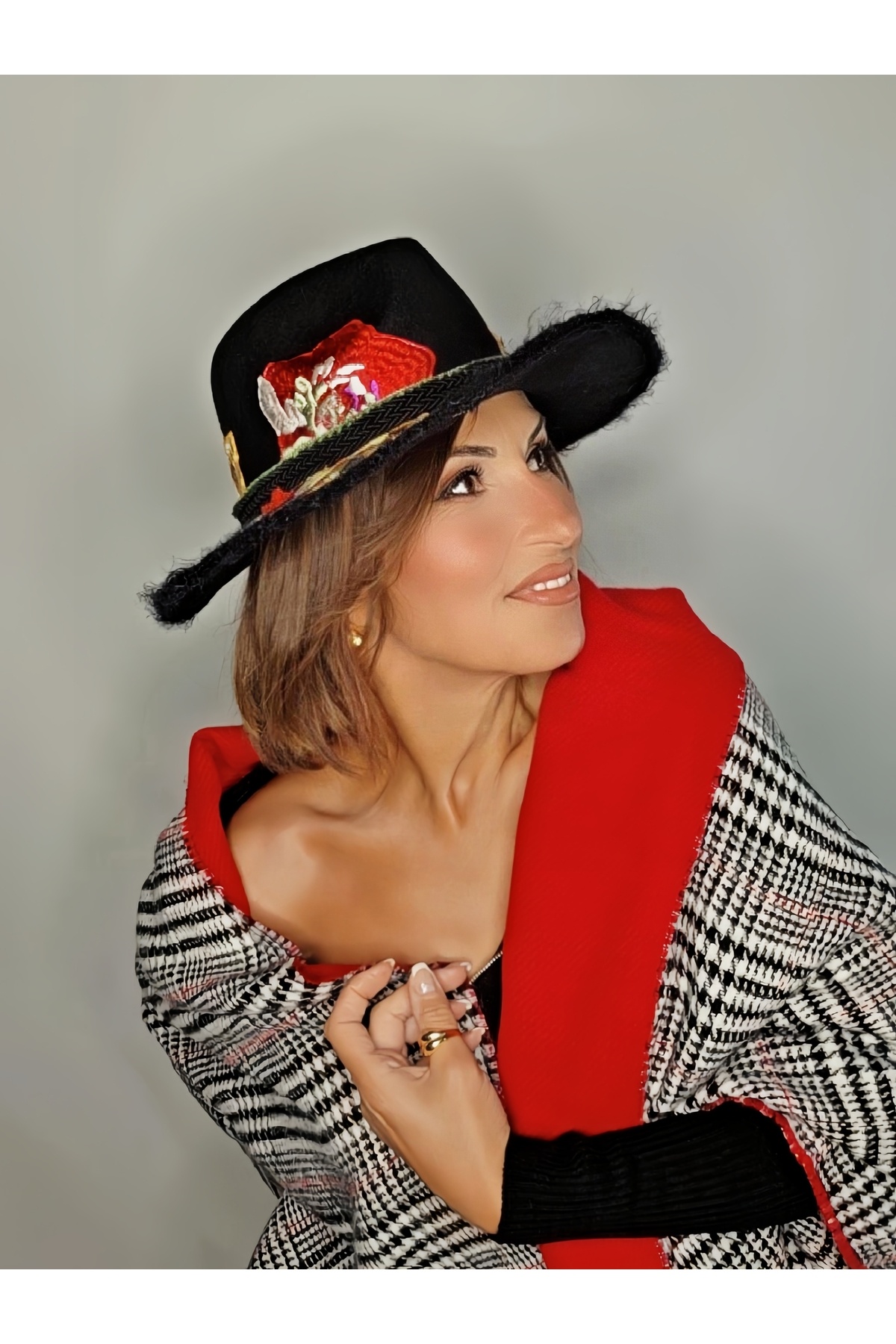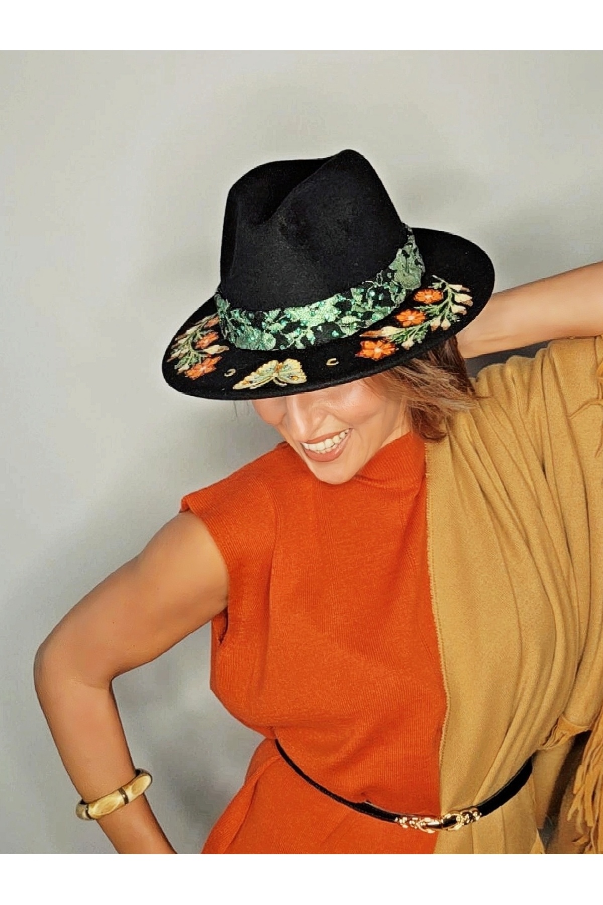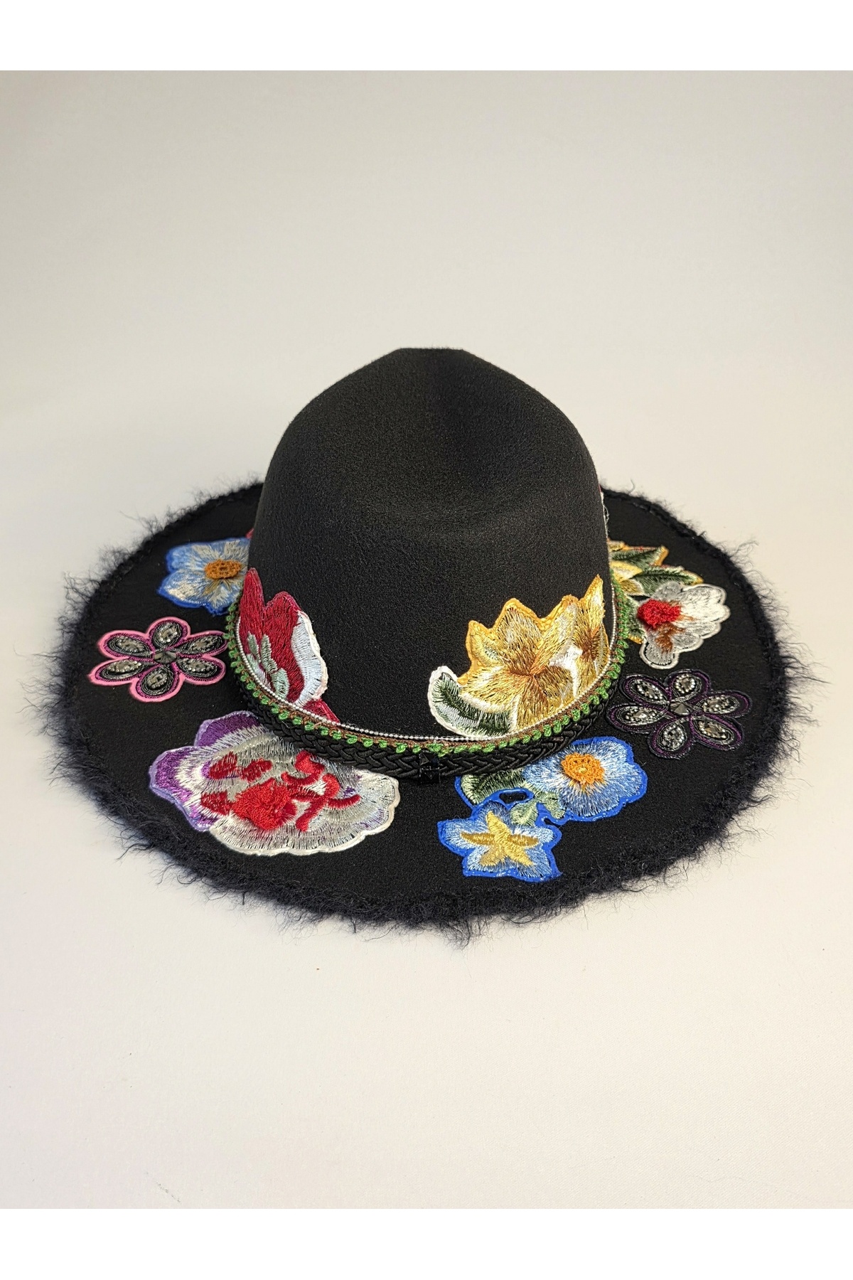 ÖZGÜN TASARIM NAKIŞ DETAYLI SİYAH FEDORA KADIN FÖTR ŞAPKA ÖZGÜN TASARIM NAKIŞ DETAYLI SİYAH FEDORA KADIN FÖTR ŞAPKA ÇEPEÇEVRENAKIŞFÖTR 57