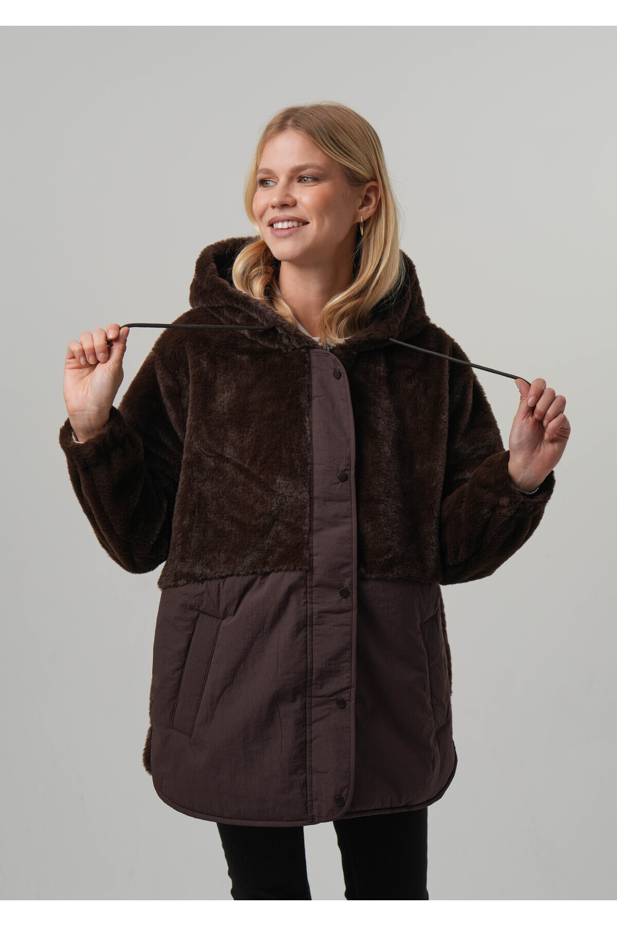 Peluş Kuzu Kıvırcık Torba Cepli Kolej Mont Kahverengi KS2526 Peluş Kuzu Kıvırcık Torba Cepli Kolej Mont Kahverengi KS2526 XL