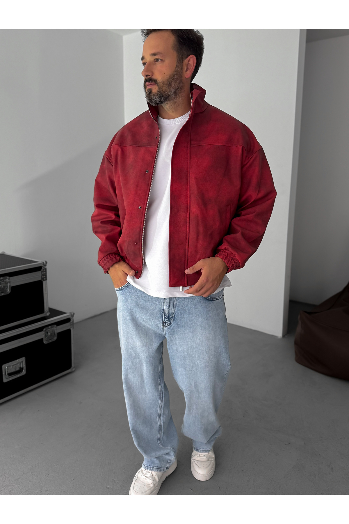 Kırmızı Efektli Bomber Deri Mont EP-7321 Kırmızı Efektli Bomber Deri Mont EP-7321 9320 XL