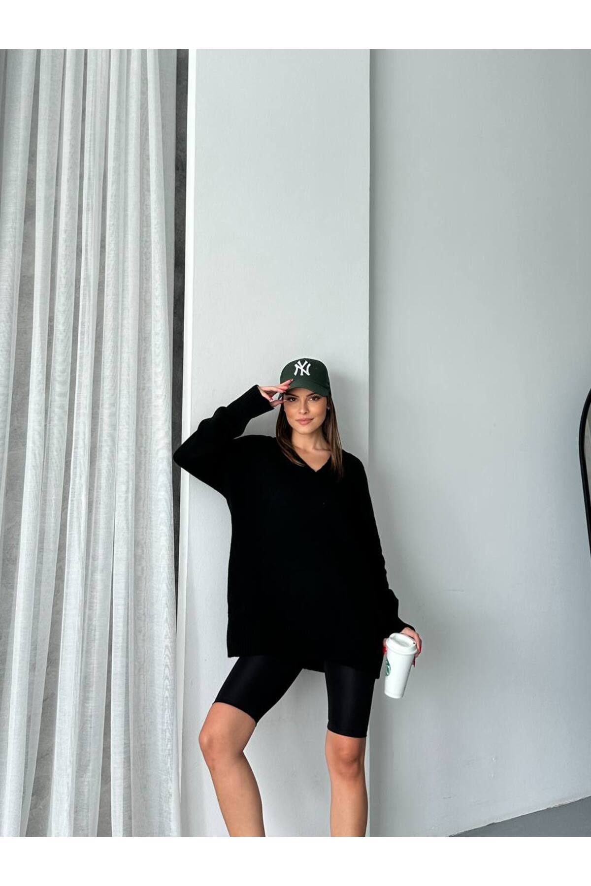 Kadın Siyah V Yaka Oversize Triko Kazak Kadın Siyah V Yaka Oversize Triko Kazak Bella40611 Standart