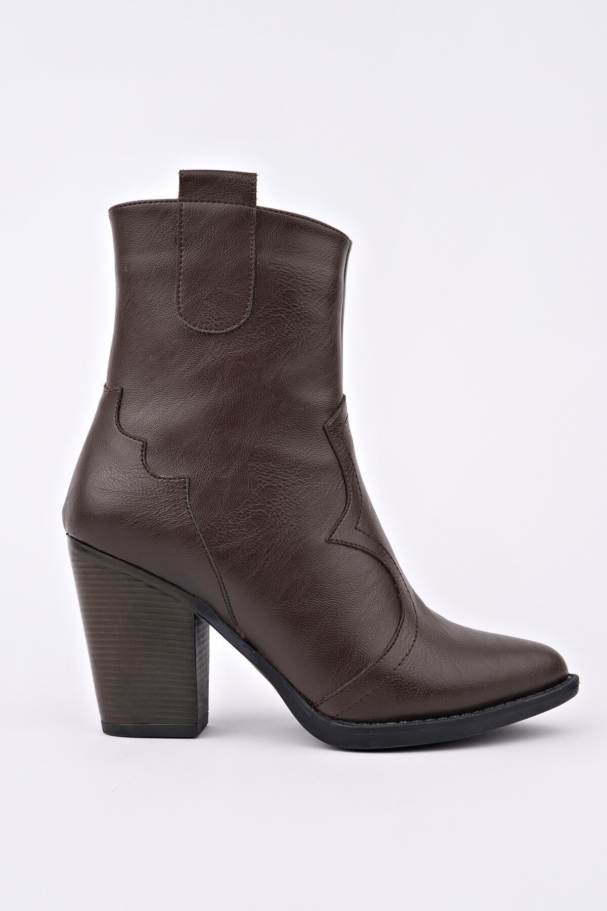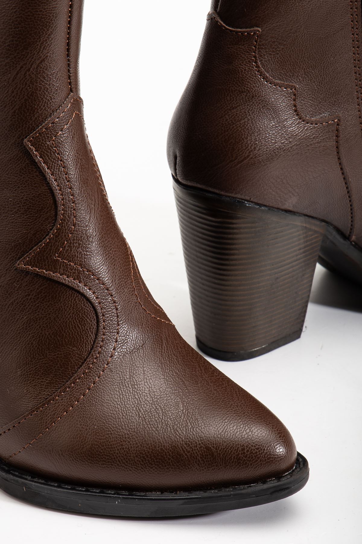 117 Kahve Kovboy Dikiş Detaylı Fermuarlı Yüksek Topuklu Günlük Kadın Bot 117 Kahve Kovboy Dikiş Detaylı Fermuarlı Yüksek Topuklu Günlük Kadın Bot İNFON117 40