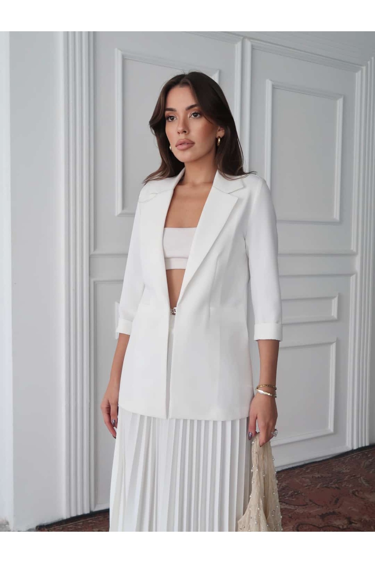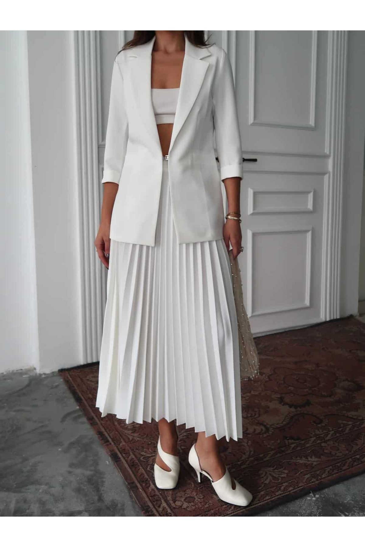 Ceket ve Beyaz Pliseli Uzun Etek Takım Ceket ve Beyaz Pliseli Uzun Etek Takım 25SWS9077 2XL