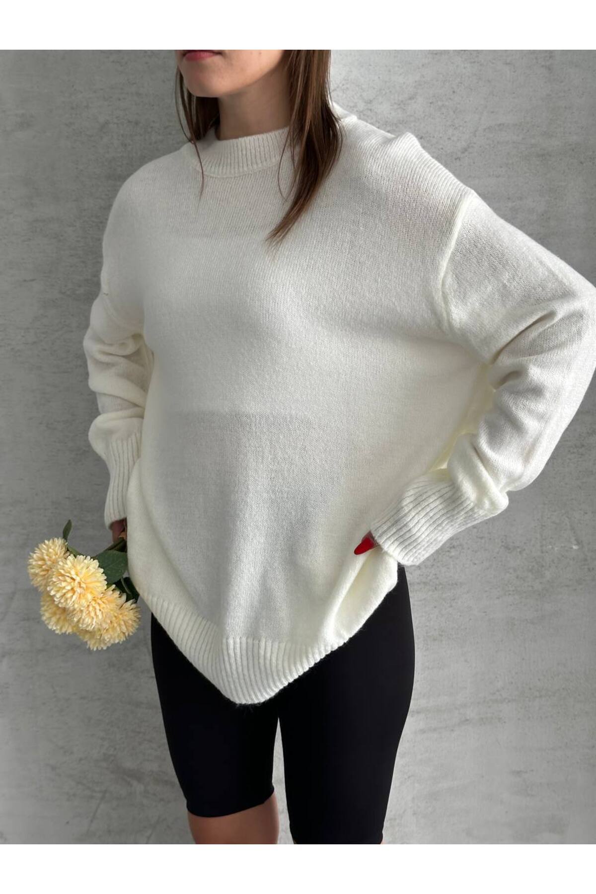 Kadın Bisiklet Yaka Oversize Triko Kazak Kadın Bisiklet Yaka Oversize Triko Kazak Bella40600 Standart