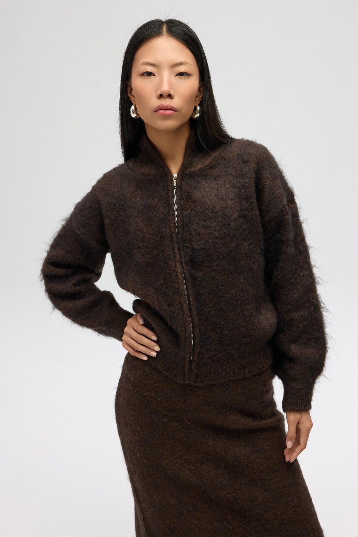 Eskara Fermuarlı Kahve Triko Hırka Eskara Fermuarlı Kahve Triko Hırka S05WD006W1 XS/S