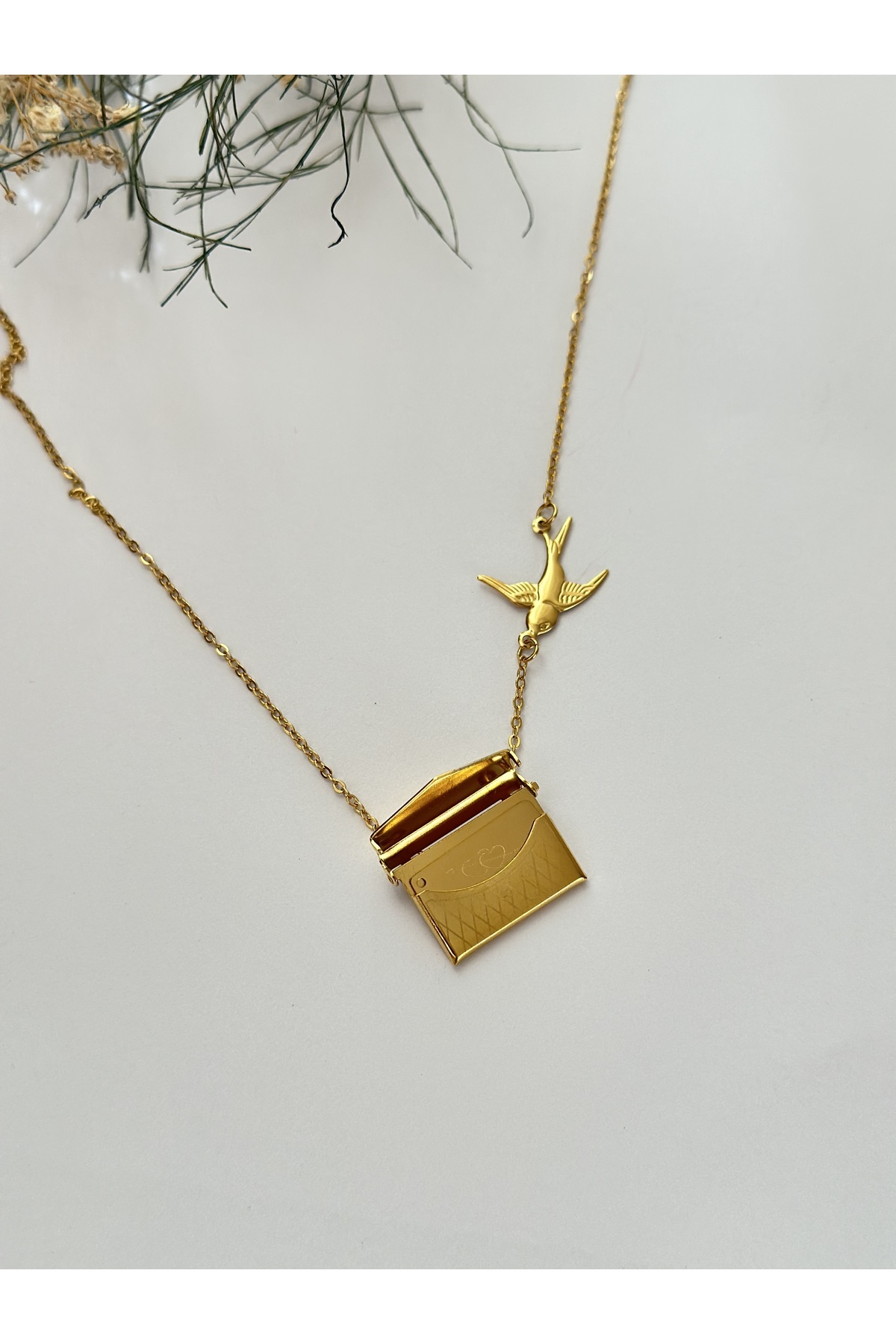 Kırlangıç detaylı açılabilir mektup love notlu kolye (muska da konulabilir) Kırlangıç detaylı açılabilir mektup love notlu kolye (muska da konulabilir) mbrlks444 S