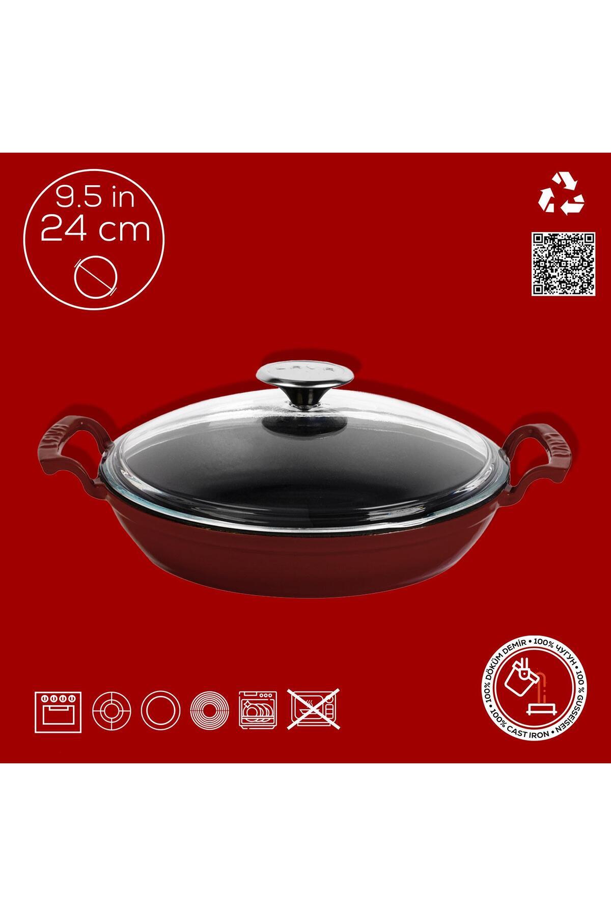 Döküm Yuvarlak Sahan Cam Kapaklı Döküm Demir Yekpare Çift Kulplu Çap(Ø)24cm.-Bordo Döküm Yuvarlak Sahan Cam Kapaklı Döküm Demir Yekpare Çift Kulplu Çap(Ø)24cm.-Bordo LV ECO Y TV 24 SHN K3 BR تک سایز