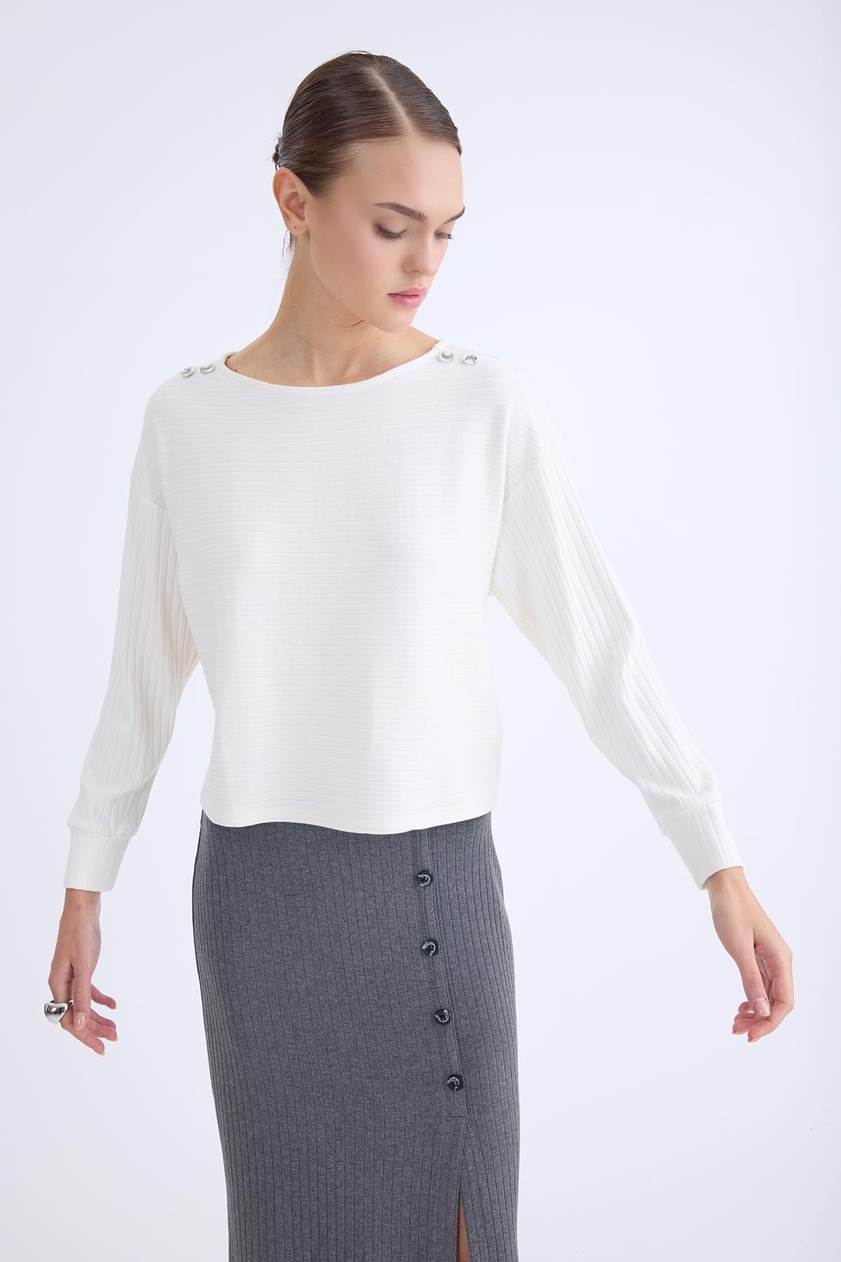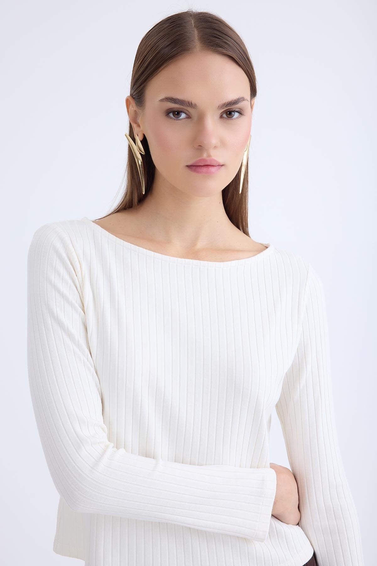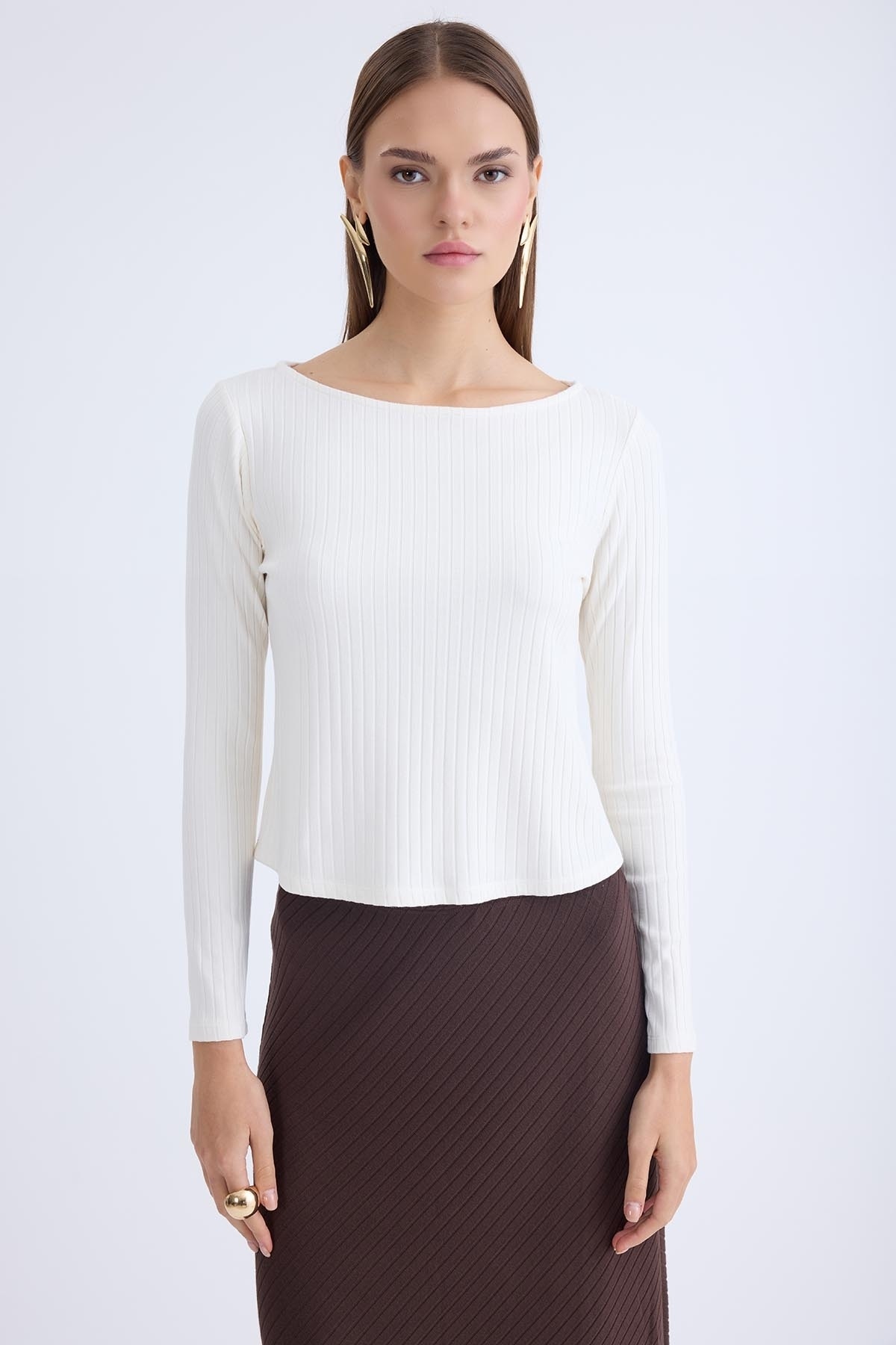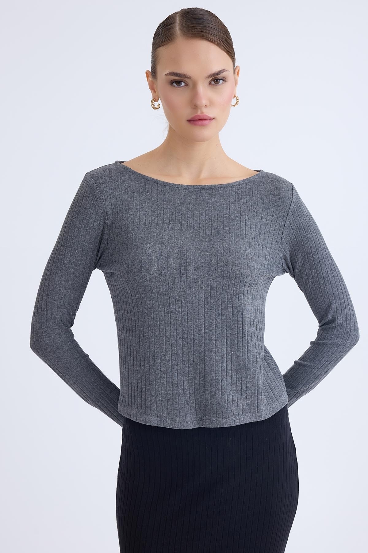 Kayık Yaka Uzun Kol Bluz Kayık Yaka Uzun Kol Bluz 25-3113 L