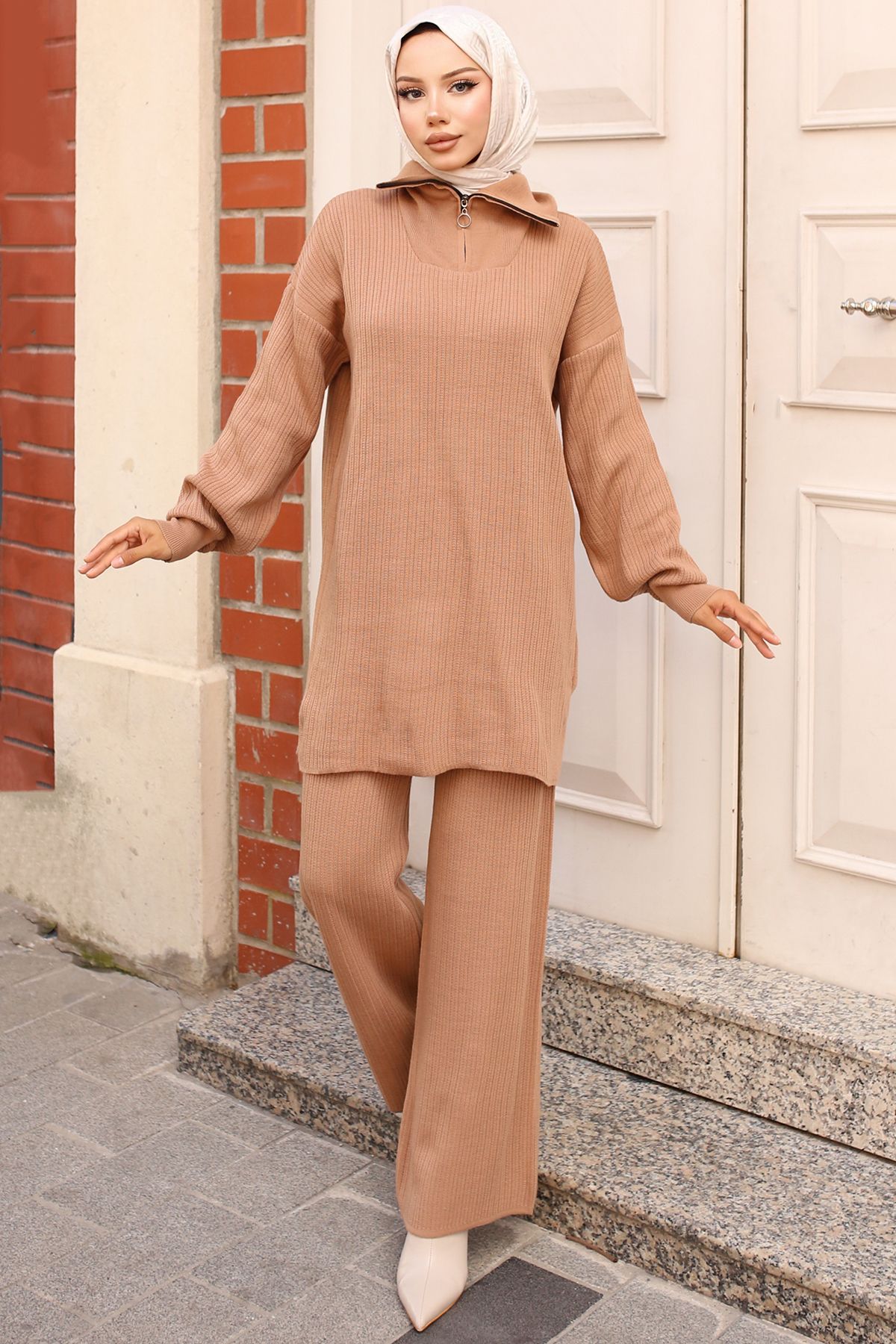 Düğmeli Çizgi Detaylı Triko Takım S1043 Vizon Düğmeli Çizgi Detaylı Triko Takım S1043 Vizon 153578-12326KBTRK01 تک سایز