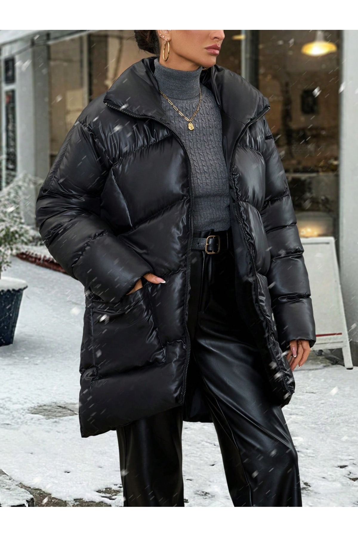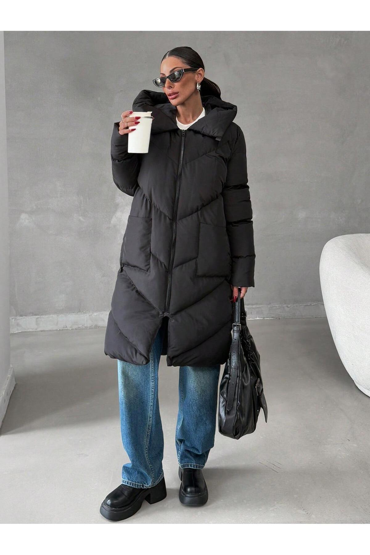 Beli Bağcık Detay Kapüşonlu Şişme Mont Beli Bağcık Detay Kapüşonlu Şişme Mont CYLAW25MNT-014 L