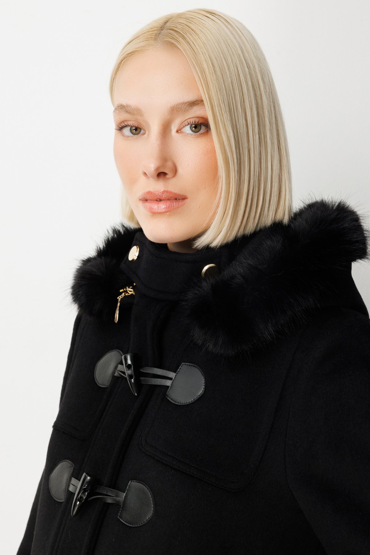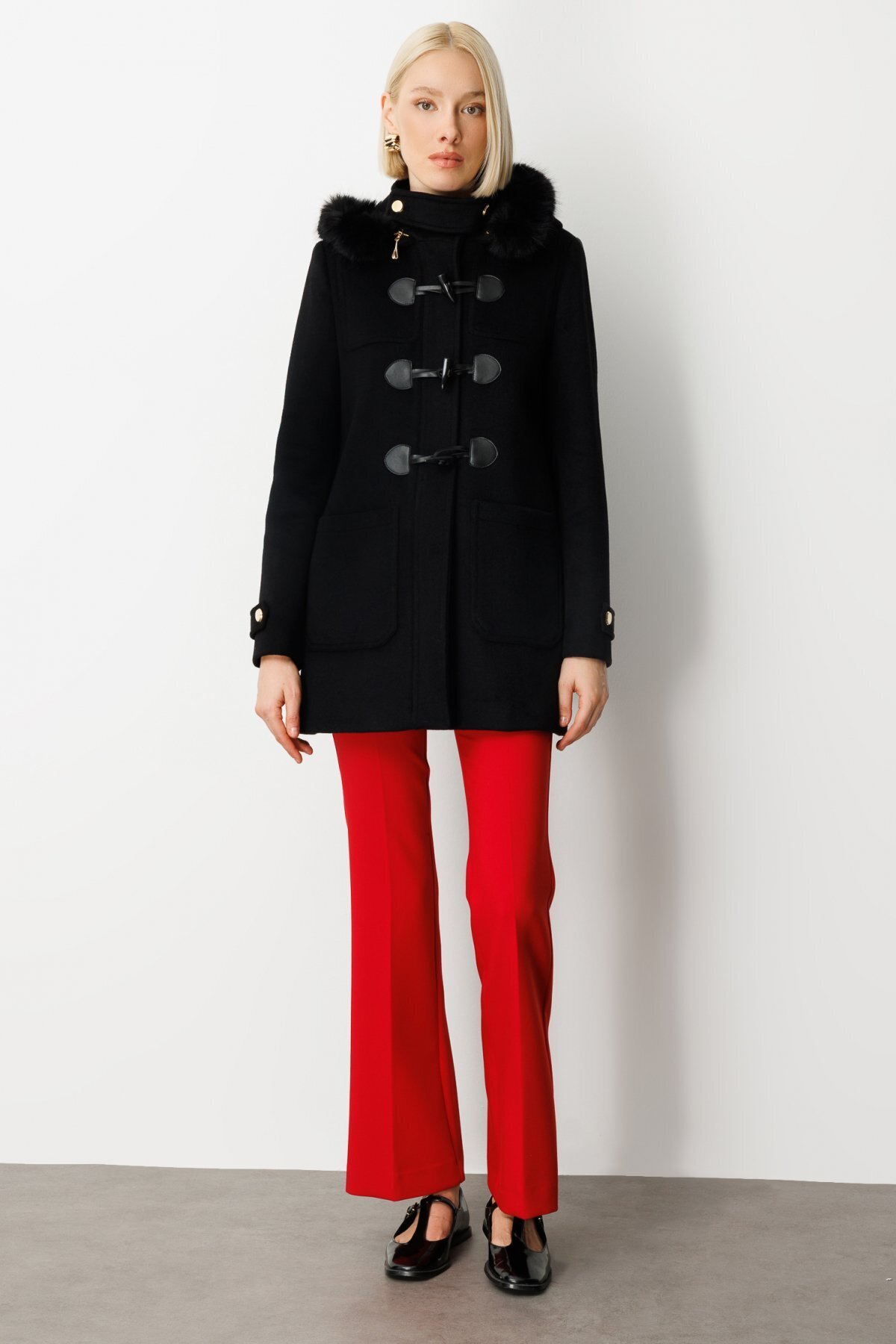 Yakası Kürklü Kapüşonlu Kaban Siyah Yakası Kürklü Kapüşonlu Kaban Siyah 26K.EKL.MAN.06015 42