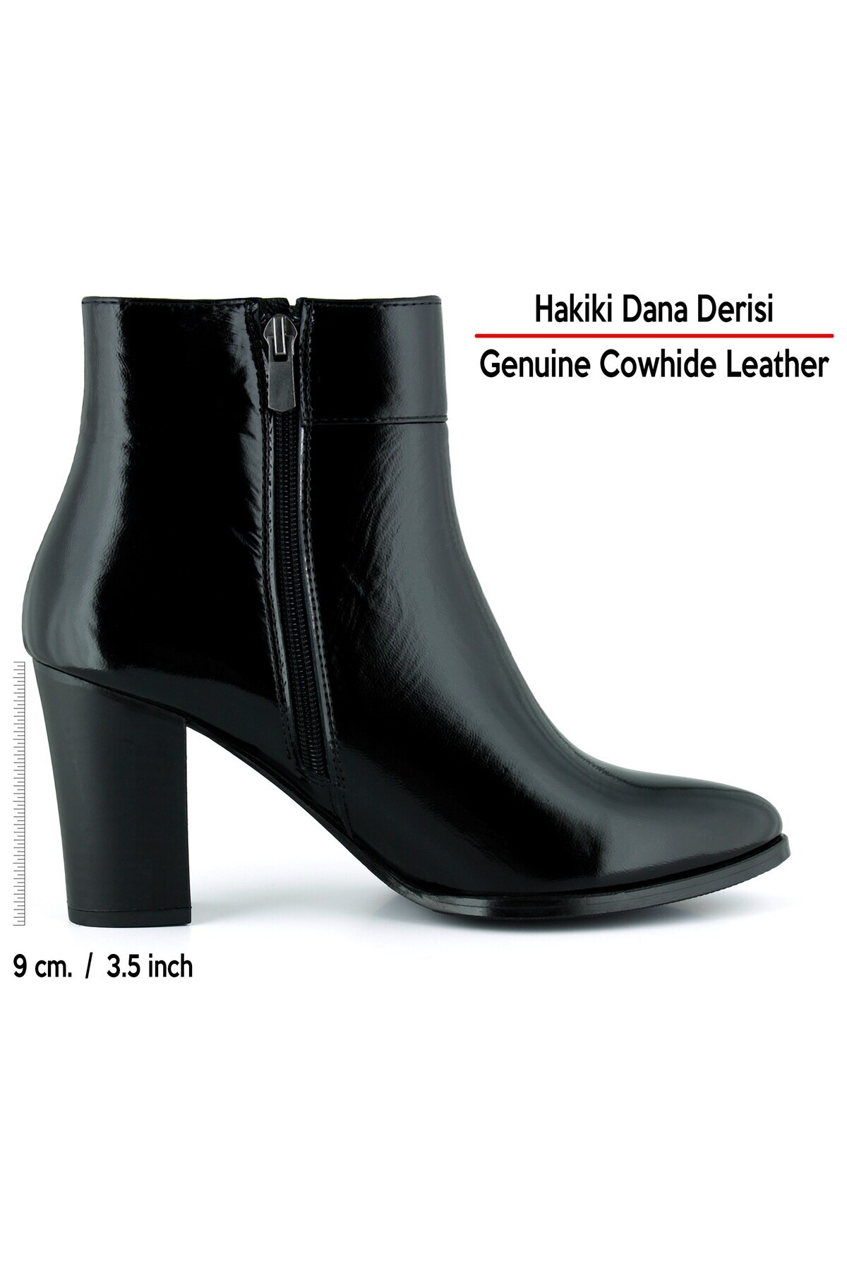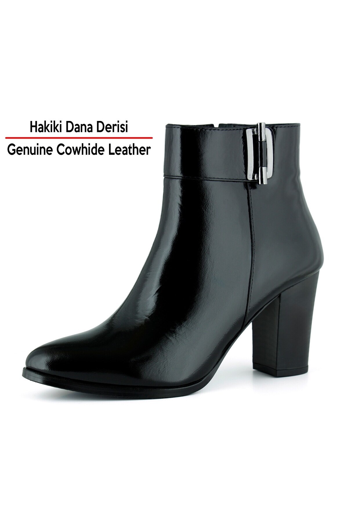 Siyah Rugan Hakiki Dana Derisi Tokalı Fermuarlı Sivri Burun Kalın Topuklu Günlük Bot Siyah Rugan Hakiki Dana Derisi Tokalı Fermuarlı Sivri Burun Kalın Topuklu Günlük Bot 37526S000202 40