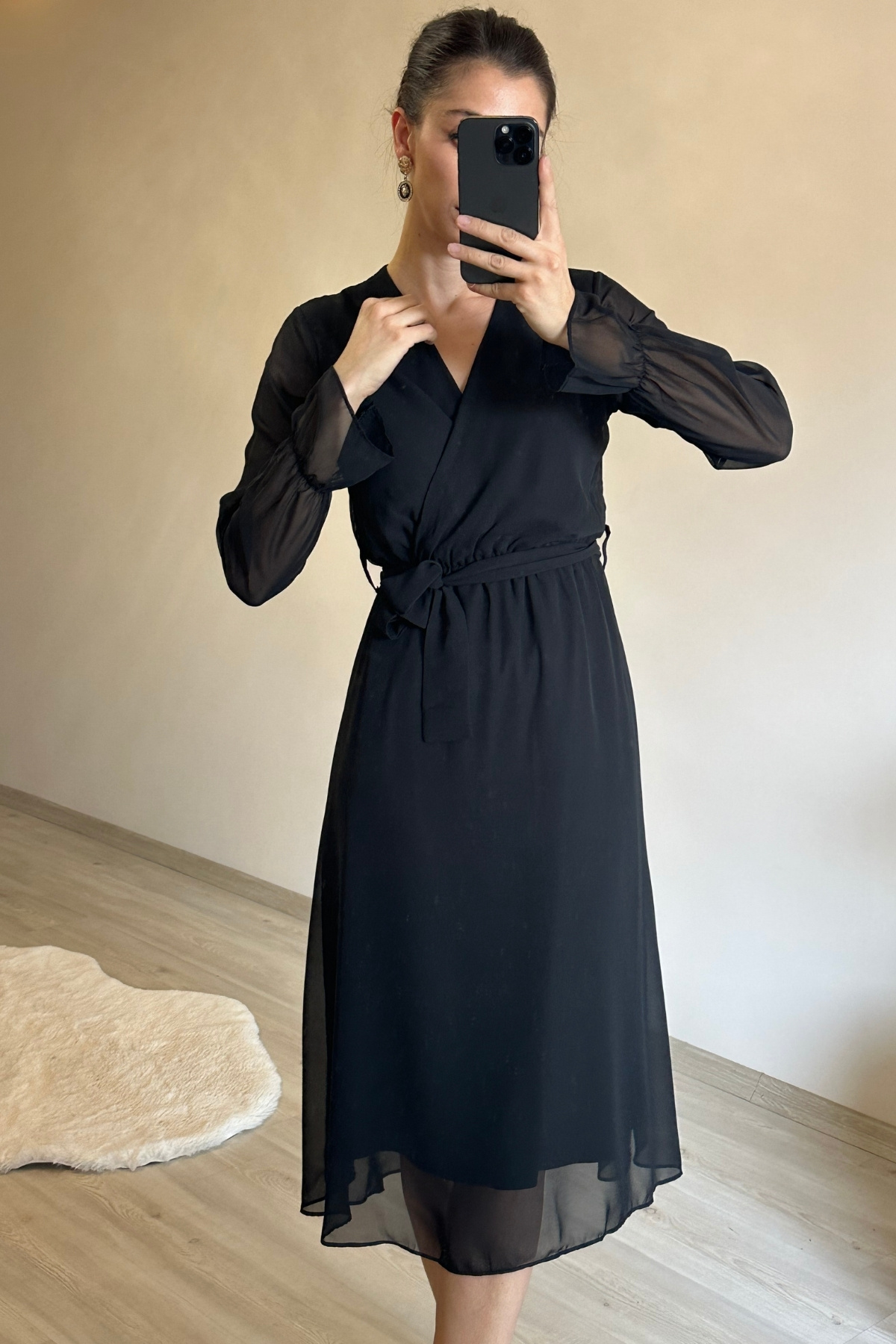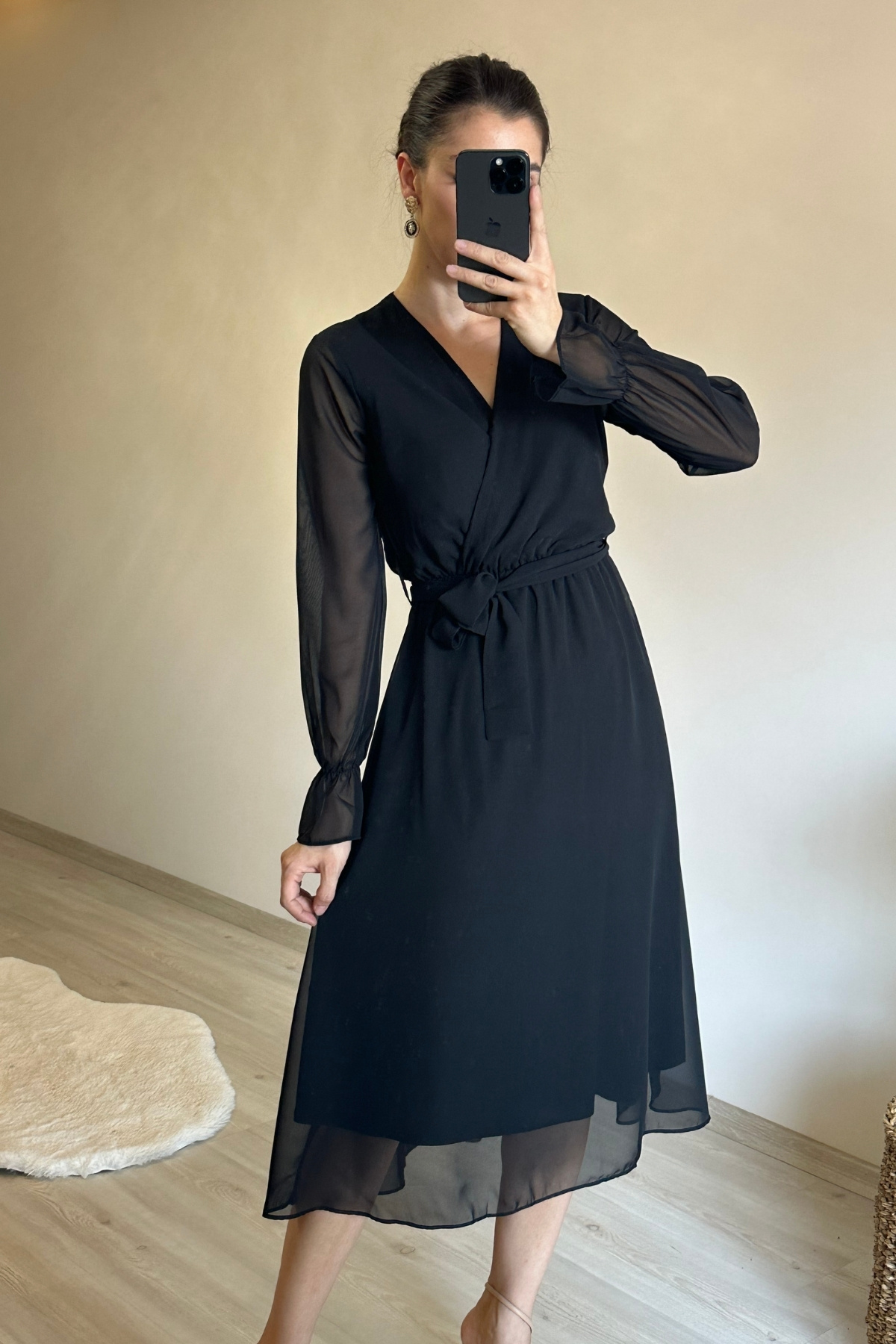 kadın midi boy kruvaze yaka kuşaklı şifon elbise NM013 kadın midi boy kruvaze yaka kuşaklı şifon elbise NM013 2XL