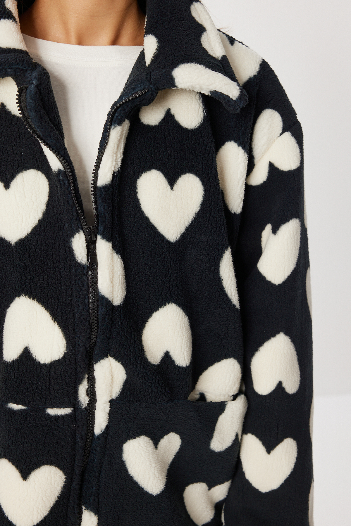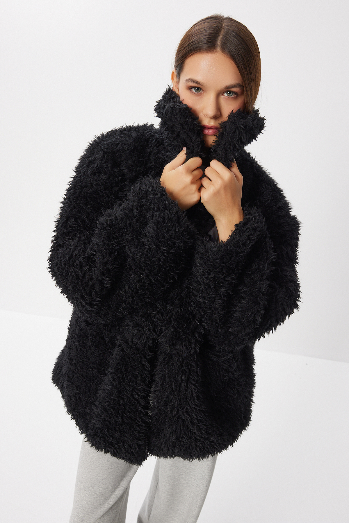 Polo Yaka Kalpli Peluş Mont LCI0036 SİYAH KEMİK Polo Yaka Kalpli Peluş Mont LCI0036 SİYAH KEMİK Standart