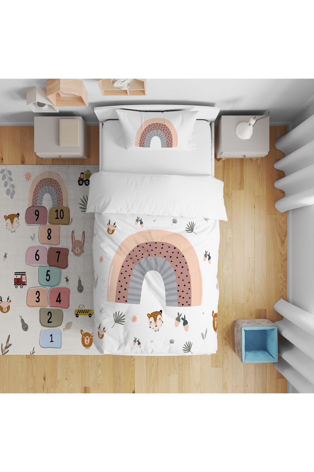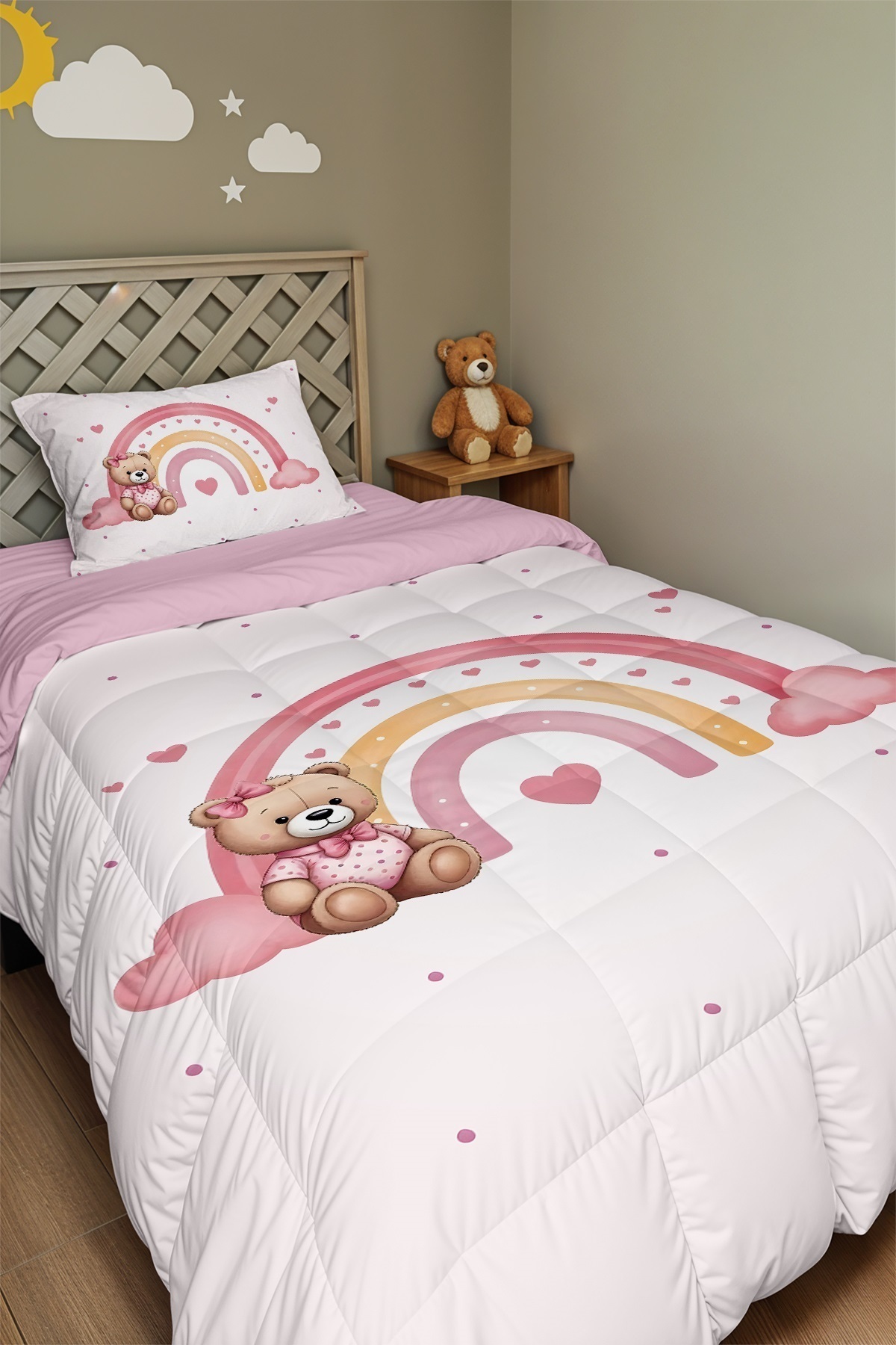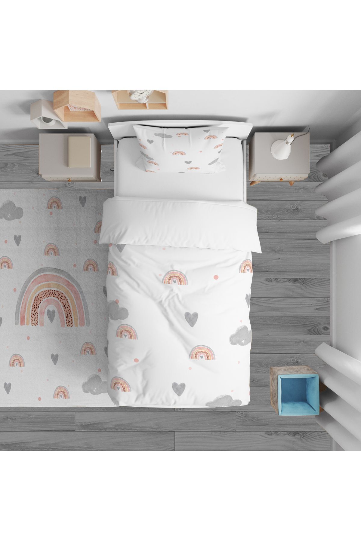 Yatak Örtüsü Gülen Gökkuşaklı Bulutlar 140x220 - Yastık Kılıfı Hediye Yatak Örtüsü Gülen Gökkuşaklı Bulutlar 140x220 - Yastık Kılıfı Hediye TYC00145291796 تک سایز