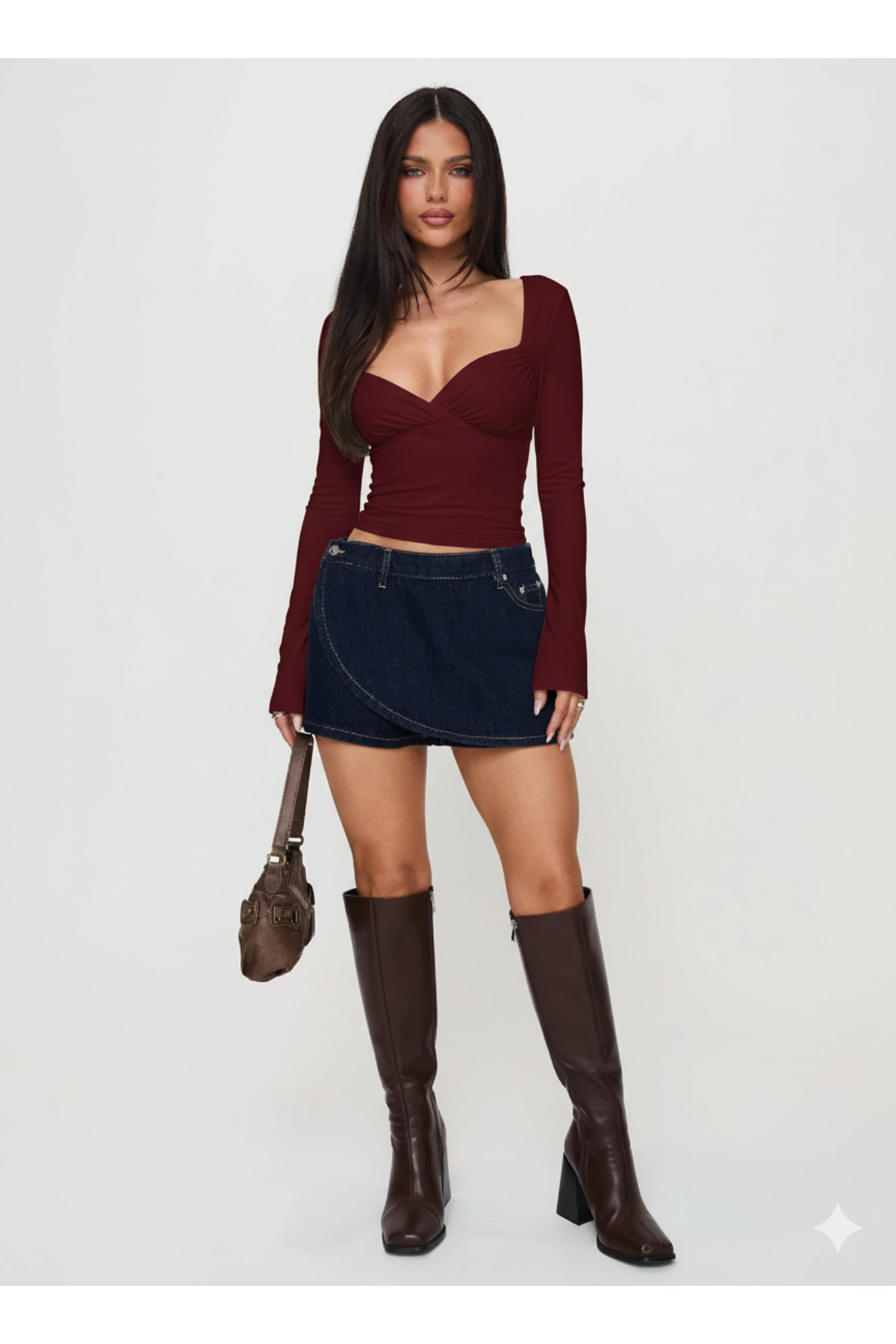Uzun Kollu Kalp Yaka Drapeli Kadın Bluz Uzun Kollu Kalp Yaka Drapeli Kadın Bluz fblr2025070801 XL