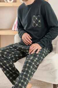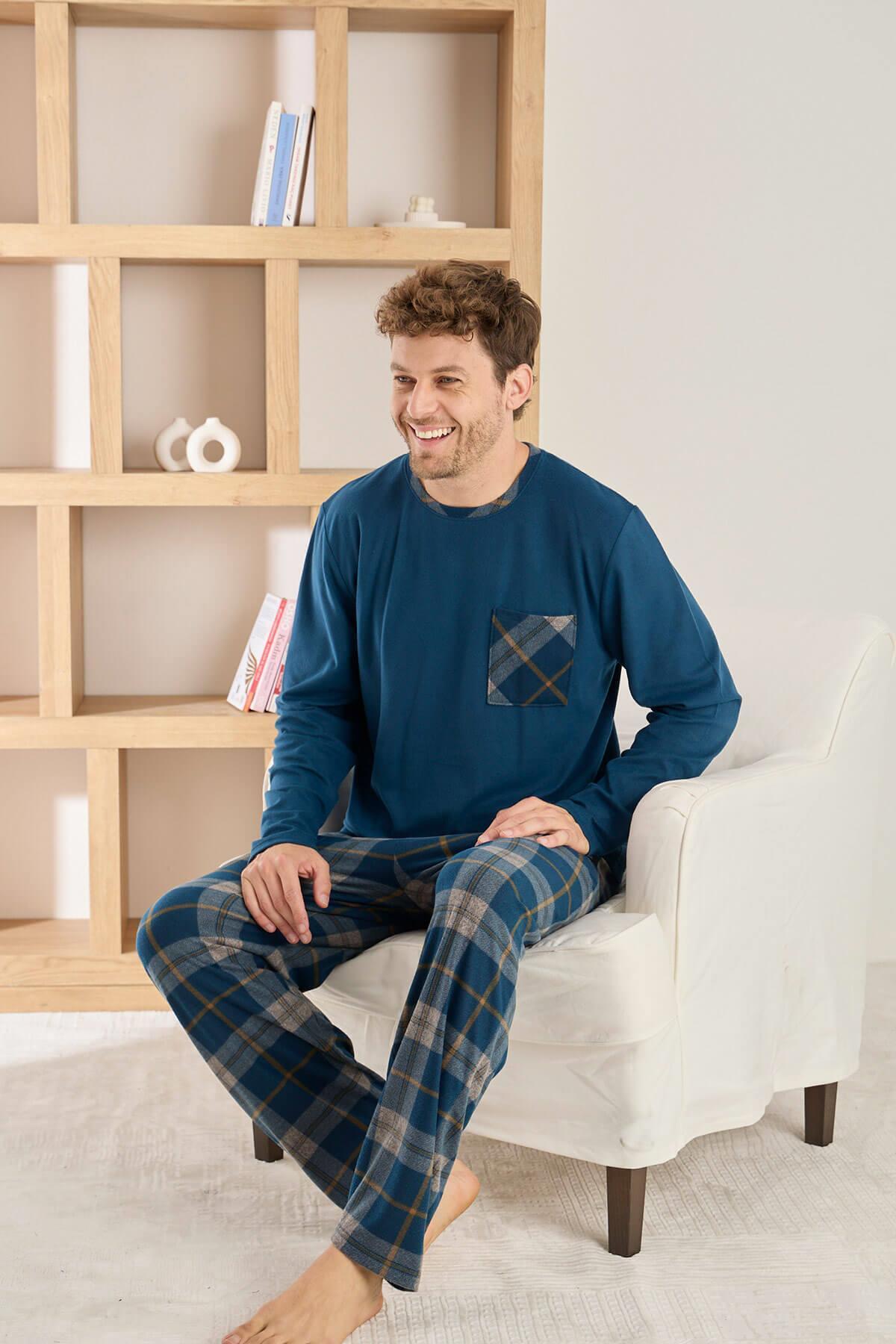 Lacivert Yeşil Ekose Desenli Elegant Erkek Pijama Takımı Lacivert Yeşil Ekose Desenli Elegant Erkek Pijama Takımı 5006 2XL