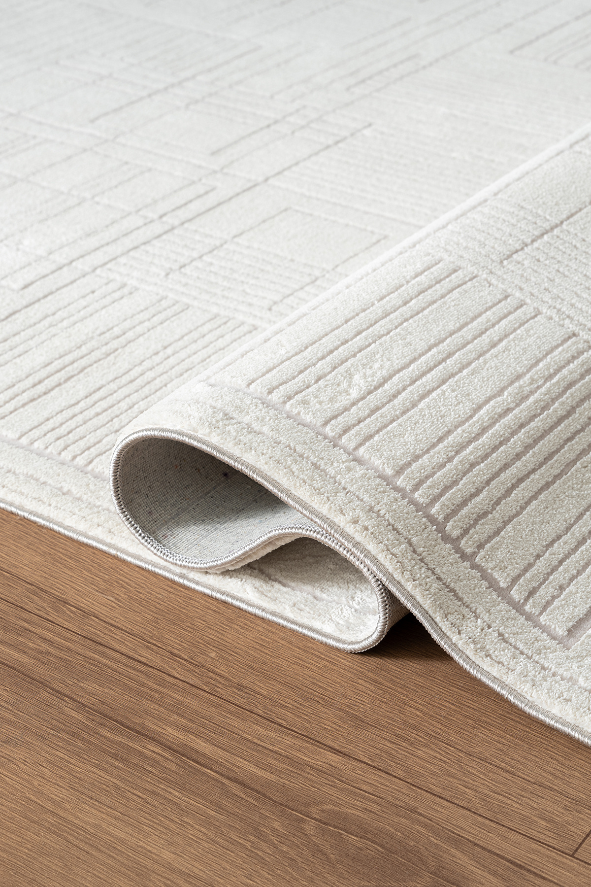 İndigo ID007W Beyaz Modern Desen Akrilik İplik Tozuaz Pamuk Taban Salon Mutfak Halısı İndigo ID007W Beyaz Modern Desen Akrilik İplik Tozuaz Pamuk Taban Salon Mutfak Halısı IN2ID007W 100 x 300