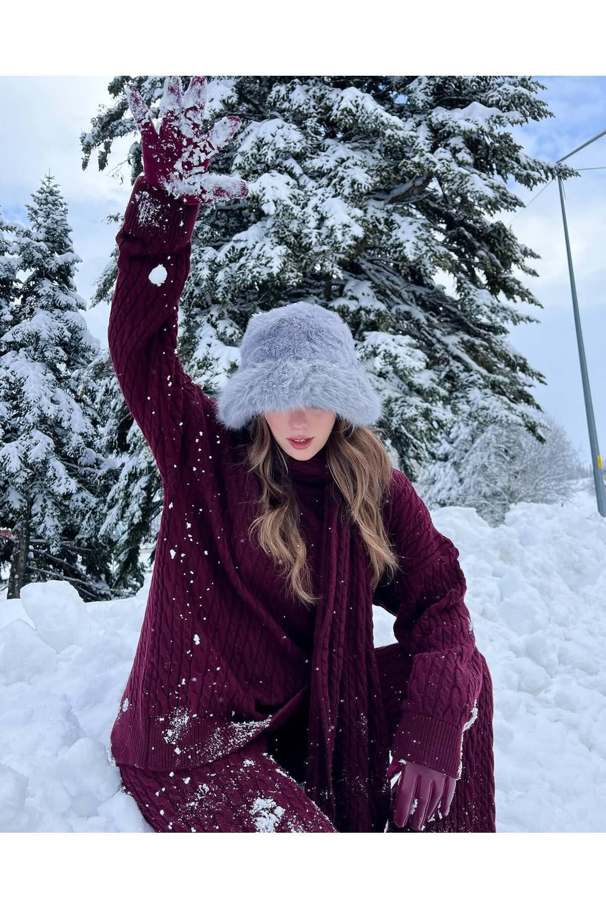 KADIN TRİKO SAÇ ÖRGÜLÜ ÜÇLÜ ATKILI PANTOLON KAZAK TAKIM KADIN TRİKO SAÇ ÖRGÜLÜ ÜÇLÜ ATKILI PANTOLON KAZAK TAKIM Hzn1585 Standart