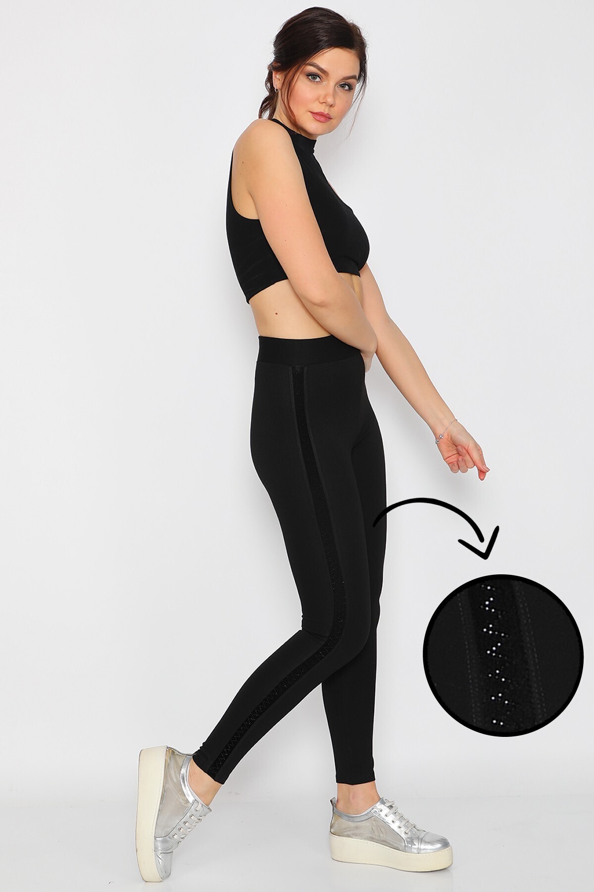 Toparlayıcı Yüksek Bel Siyah Kışlık Kadın Tayt Toparlayıcı Yüksek Bel Siyah Kışlık Kadın Tayt STK1682 S