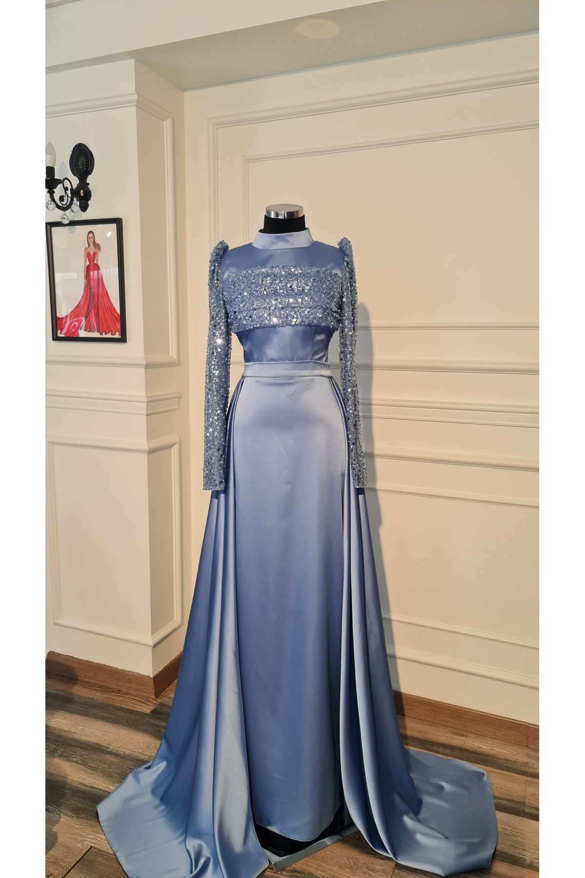İndigo Mavi Saten Kumaştan,Takma Etekli Söz Nişan ,Tesettür Abiye İndigo Mavi Saten Kumaştan,Takma Etekli Söz Nişan ,Tesettür Abiye TESETTÜRTAKMAETEK 34