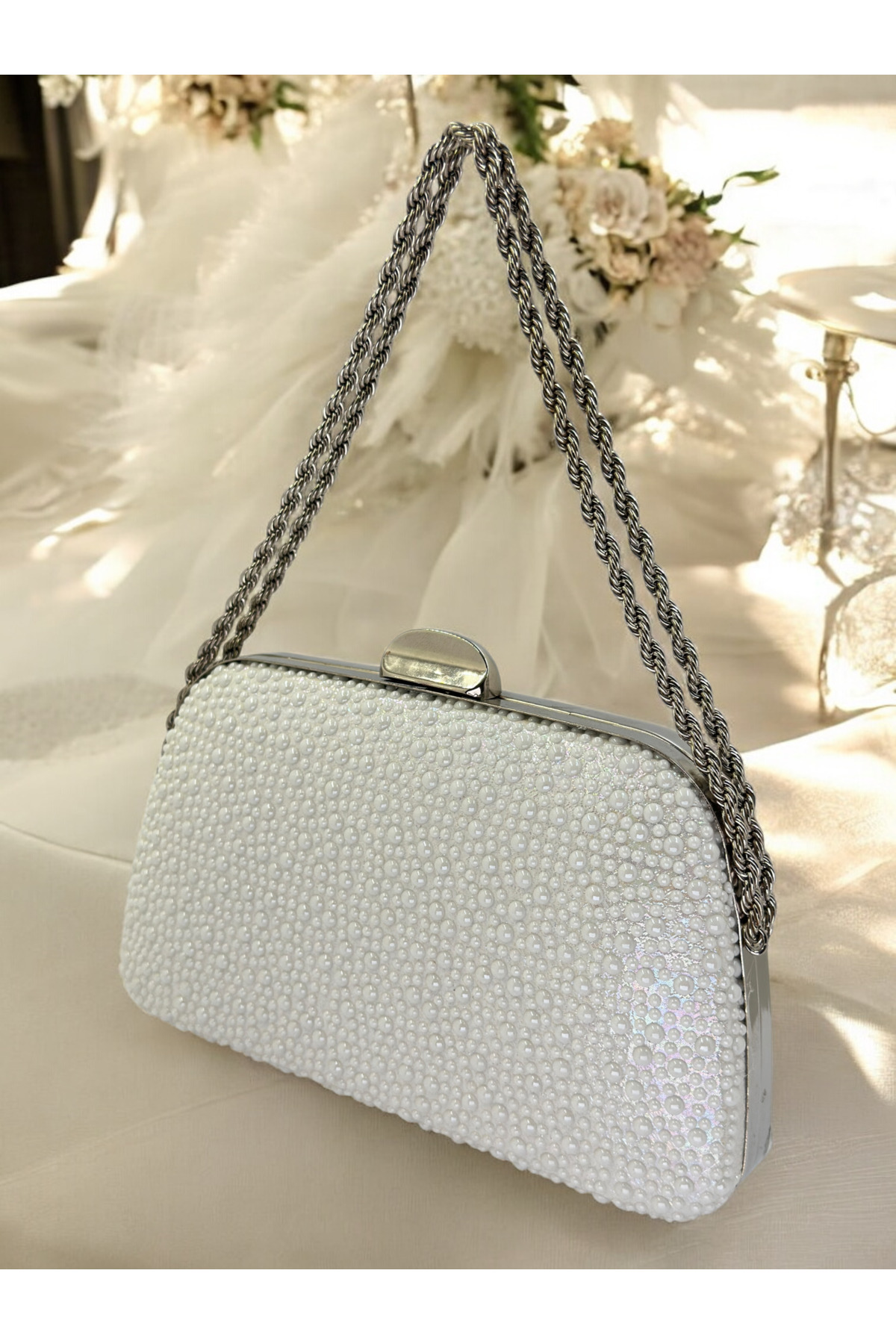 Ekru Renk Taşlı Zincir Detaylı Zincir Saplı Kadın Abiye Çanta Düğün Nişan Mezuniyet Ekru Renk Taşlı Zincir Detaylı Zincir Saplı Kadın Abiye Çanta Düğün Nişan Mezuniyet 134-8 DMC تک سایز