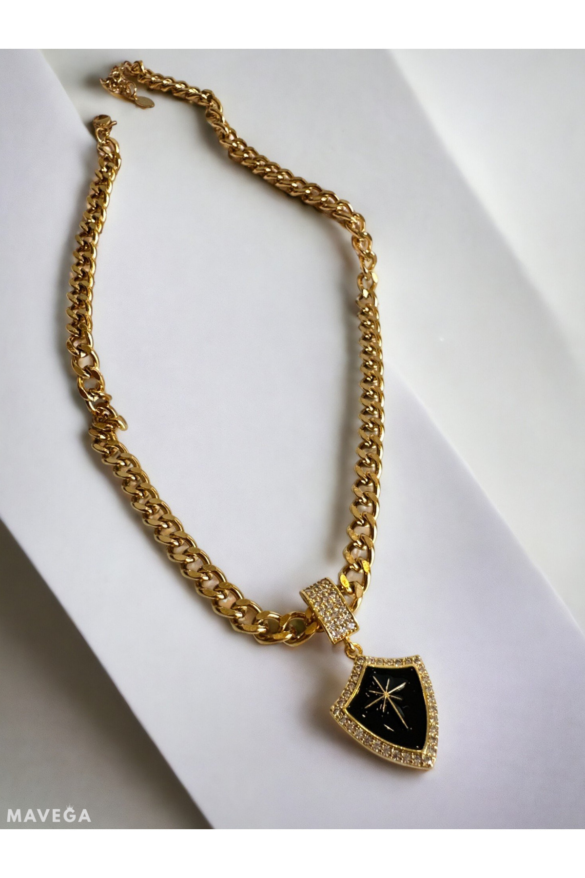 Kalın Zincirli Kutup Yıldızlı Kadın Kolye | Kararmaz Çelik, Zirkon Taş, Altın Renk, 45 Cm Kalın Zincirli Kutup Yıldızlı Kadın Kolye | Kararmaz Çelik, Zirkon Taş, Altın Renk, 45 Cm DesignedForYou32458 45 cm