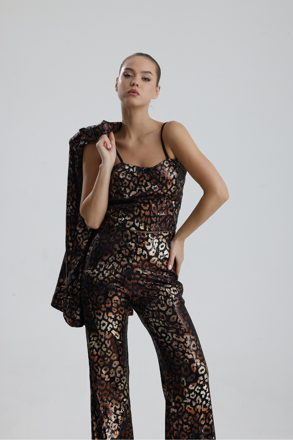 Gloplu Fermuarlı Pul Payet Bustiyer | BUS32675 Siyah Bronz Leopar Gloplu Fermuarlı Pul Payet Bustiyer | BUS32675 Siyah Bronz Leopar 42