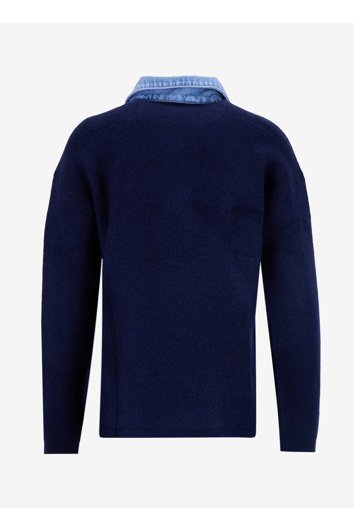 Gömlek Yaka Relaxed Düz Lacivert Kazak Kadın F5WL-KZK0131 Gömlek Yaka Relaxed Düz Lacivert Kazak Kadın F5WL-KZK0131 5003273431 XL