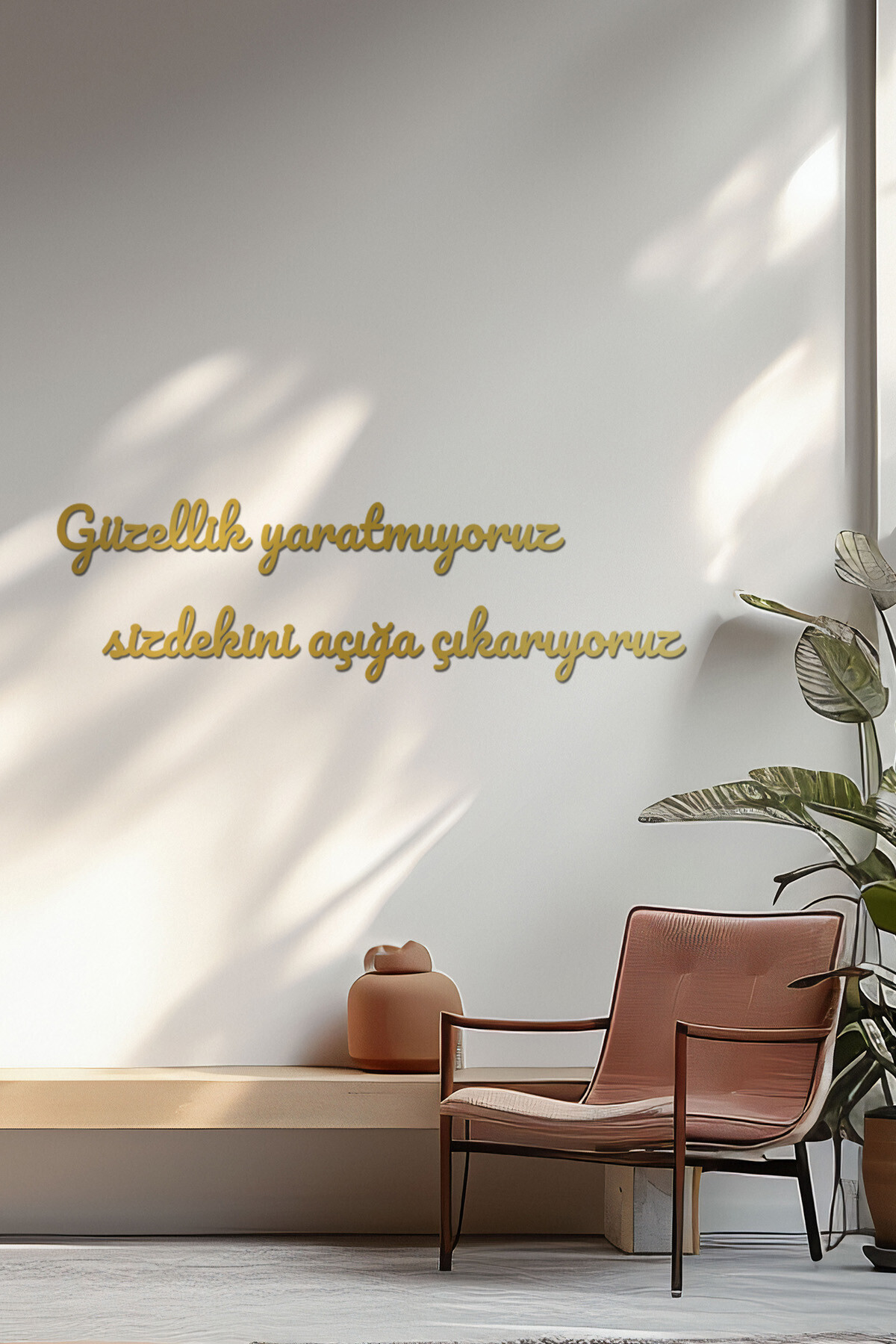 Ahşap Dekoratif Duvar Yazısı - Güzellik Merkezi - Güzellik yaratmıyoruz, sizdekini açığa çıkarıyoruz Ahşap Dekoratif Duvar Yazısı - Güzellik Merkezi - Güzellik yaratmıyoruz, sizdekini açığa çıkarıyoruz IOADESIGN-YAZ-SIZDEKINI 25 x 90