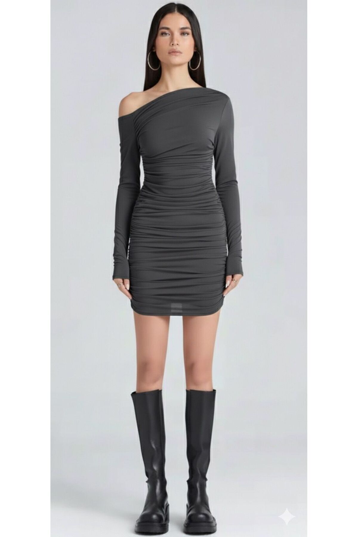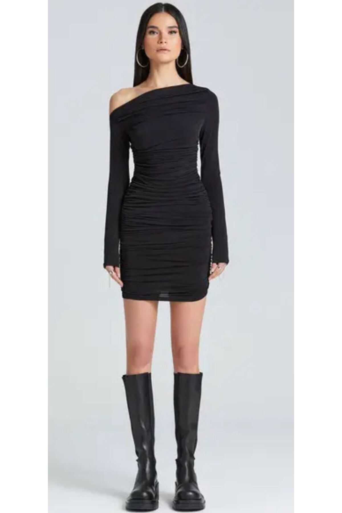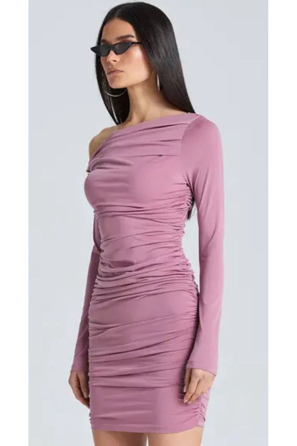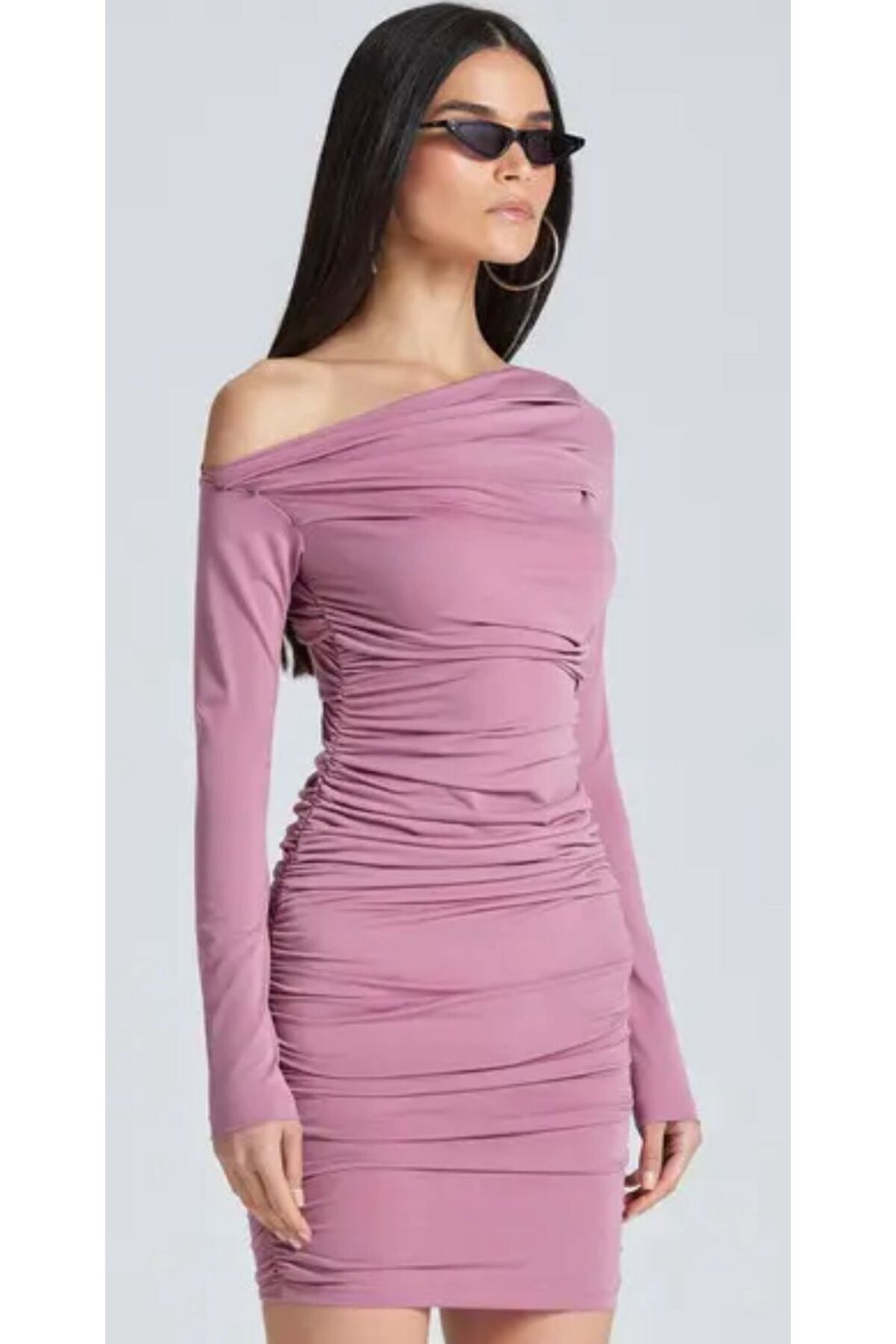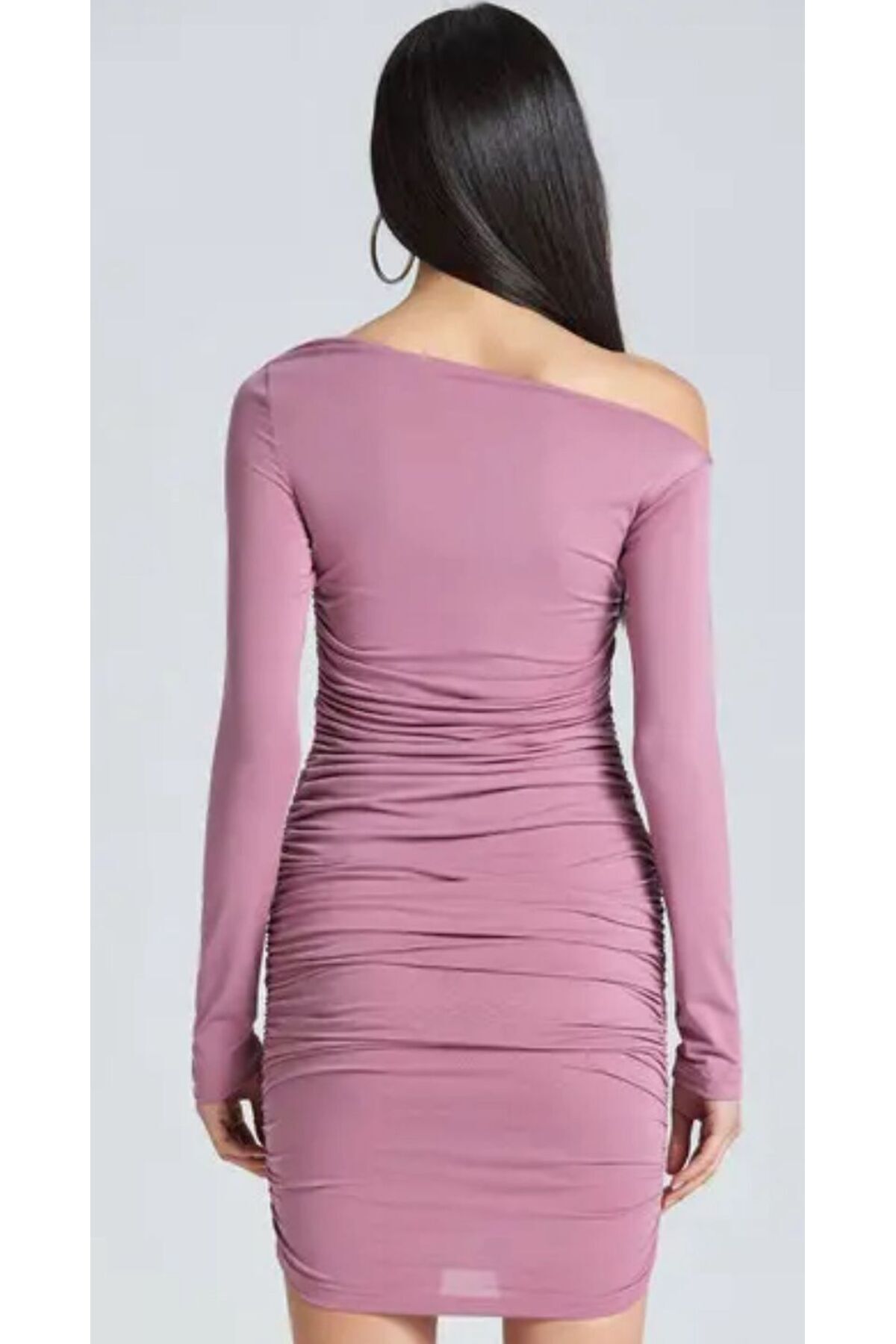 Drapeli Omzu Açık Uzun Kollu Mini Gül Kurusu Elbise Drapeli Omzu Açık Uzun Kollu Mini Gül Kurusu Elbise S2005 L