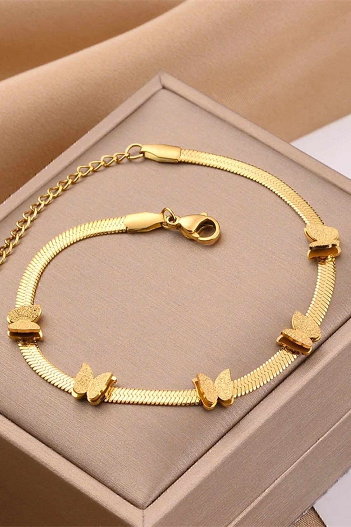 Altın Renk Zarif Ve Şık Tasarım Ezme Italyan Zincirli Kelebek Stil Çelik Bileklik Altın Renk Zarif Ve Şık Tasarım Ezme Italyan Zincirli Kelebek Stil Çelik Bileklik BİLEKLİK Standart