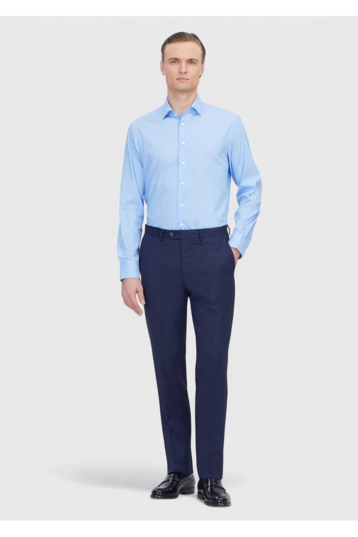 Açık Mavi Regular Fit Dokuma Klasik Pamuk Karışımlı Gömlek Açık Mavi Regular Fit Dokuma Klasik Pamuk Karışımlı Gömlek 163604 46