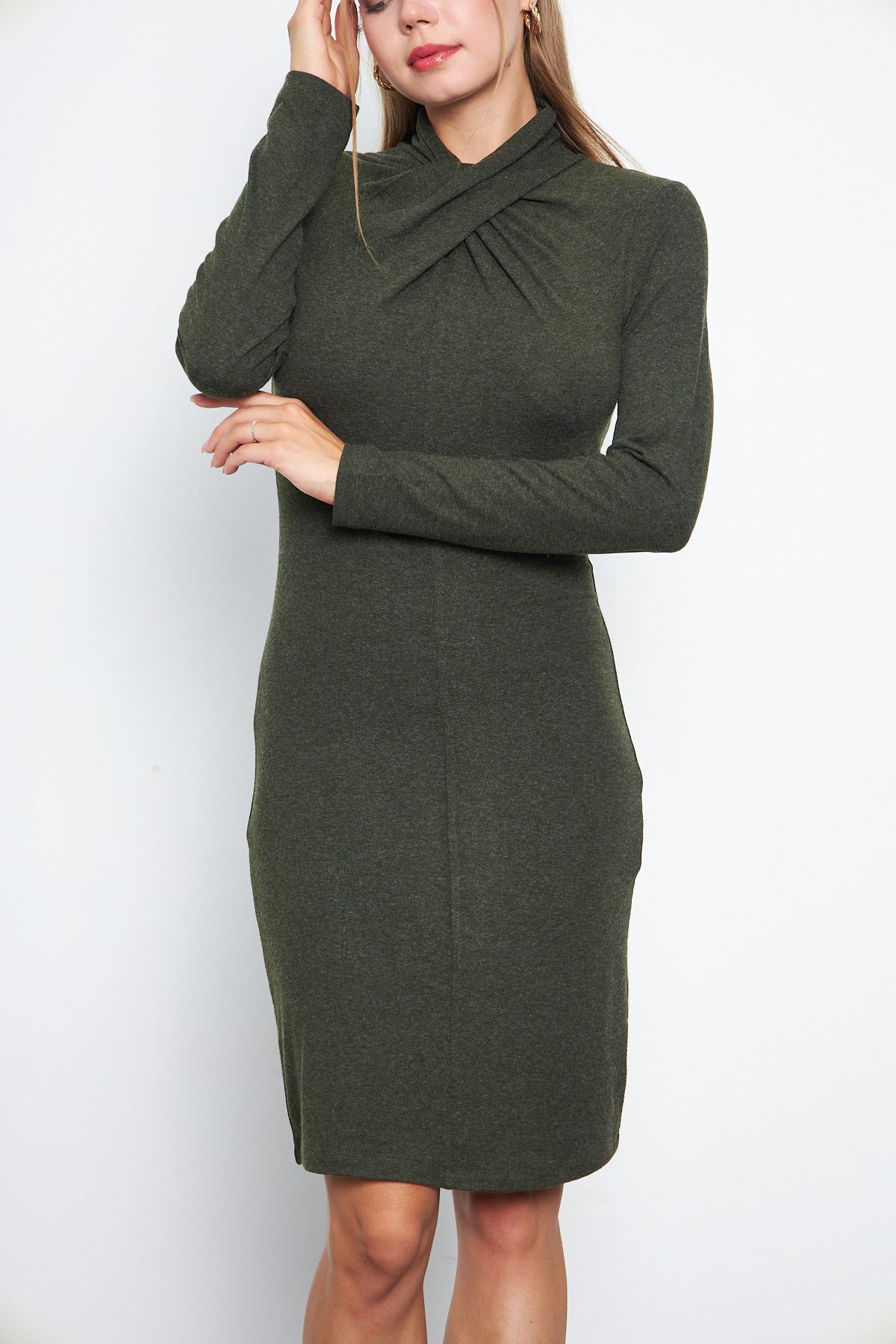 Kadın Yarım Boğazlı Uzun Kollu Kaşkorse Mini Bodycon Elbise-Petrol Kadın Yarım Boğazlı Uzun Kollu Kaşkorse Mini Bodycon Elbise-Petrol AVON9472 XL