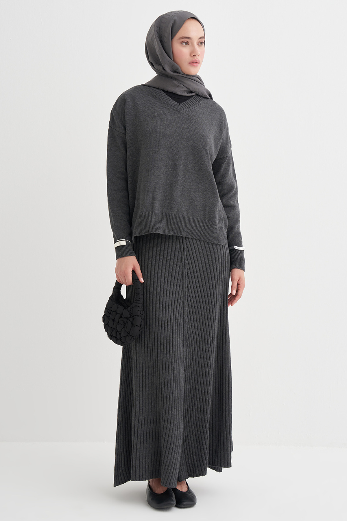 Düz Örgü Triko Etekli Takım Bordo Düz Örgü Triko Etekli Takım Bordo crl-32 تک سایز