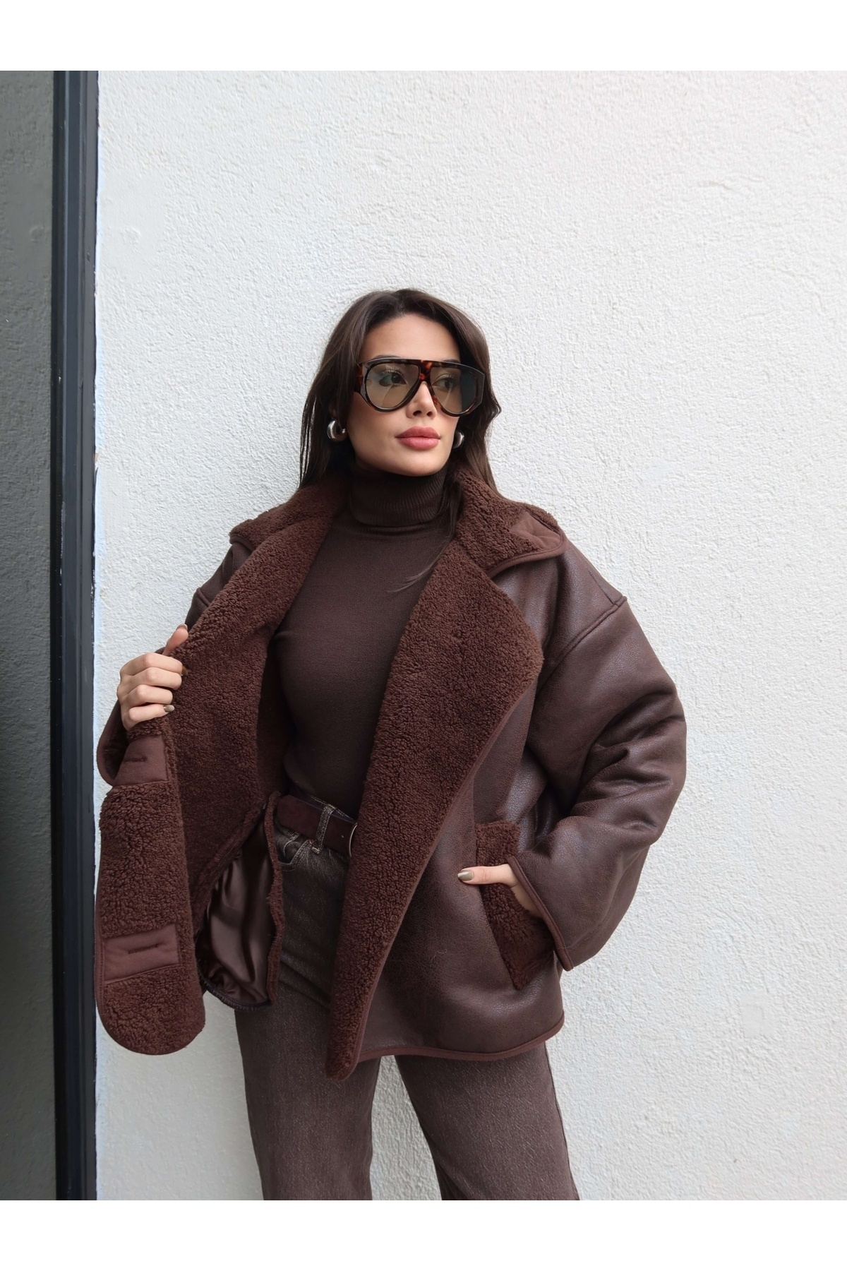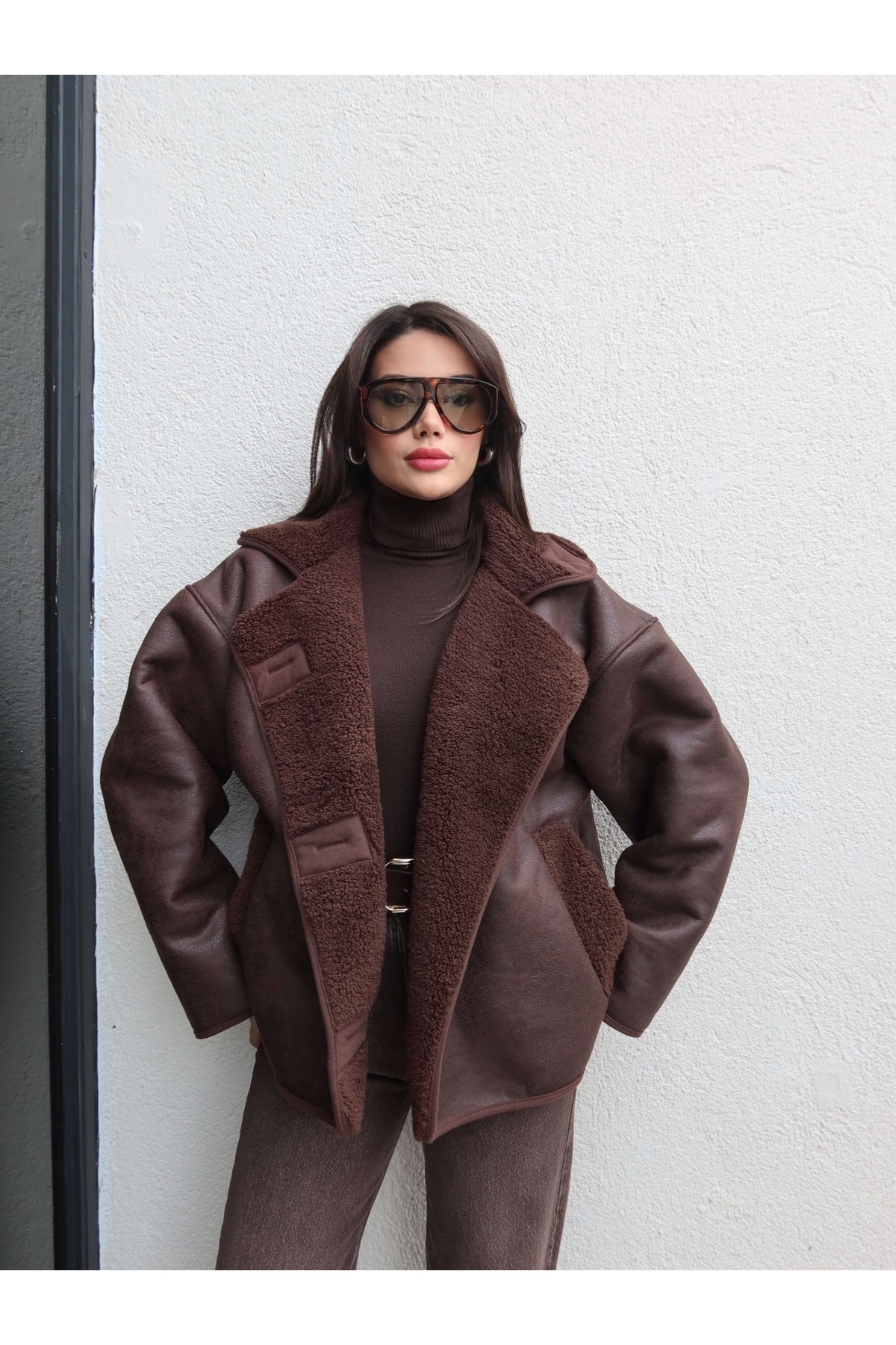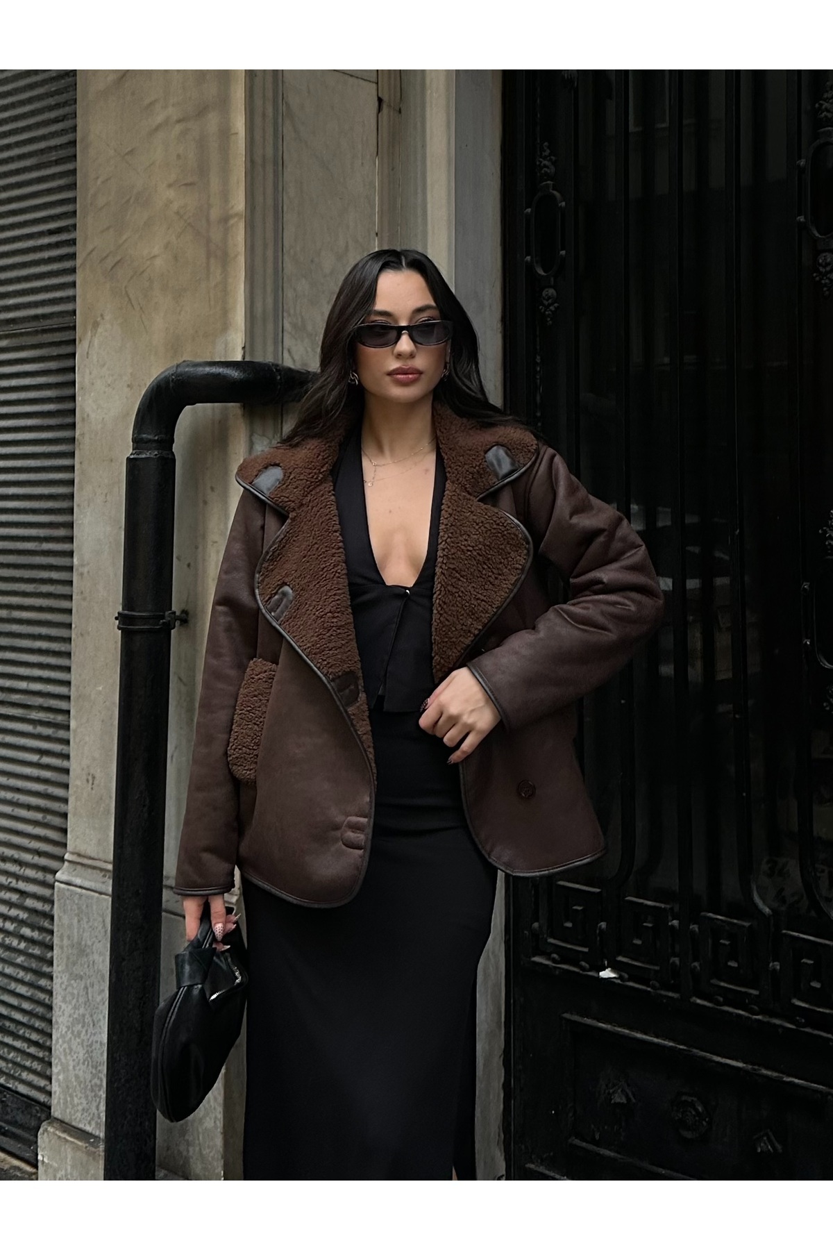 Kahve Düğmeli Süet Ceket Kahve Düğmeli Süet Ceket EH-6094 L