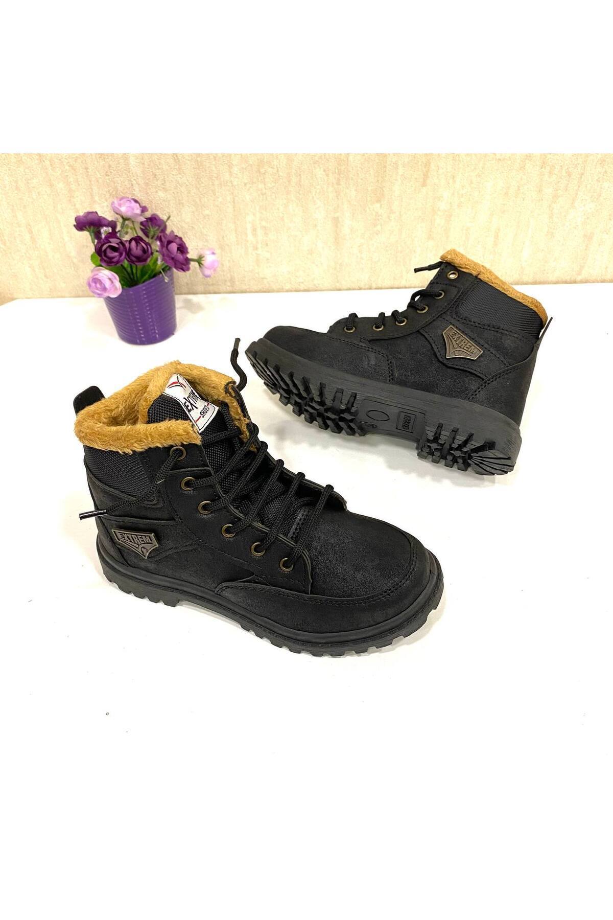 Erkek Çocuk Bot İçi Kürklü Kaymaz Taban Siyah Saks Suya Dayanıklı Çocuk Bot Erkek Çocuk Bot İçi Kürklü Kaymaz Taban Siyah Saks Suya Dayanıklı Çocuk Bot ErkekÇocukBot-Drops 35