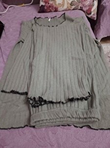 Pamuklu Fiyonk Detaylı Fitilli Kalın Uzun Kollu Pijama Takımı Pamuklu Fiyonk Detaylı Fitilli Kalın Uzun Kollu Pijama Takımı Fitillifiyonk1 2XL