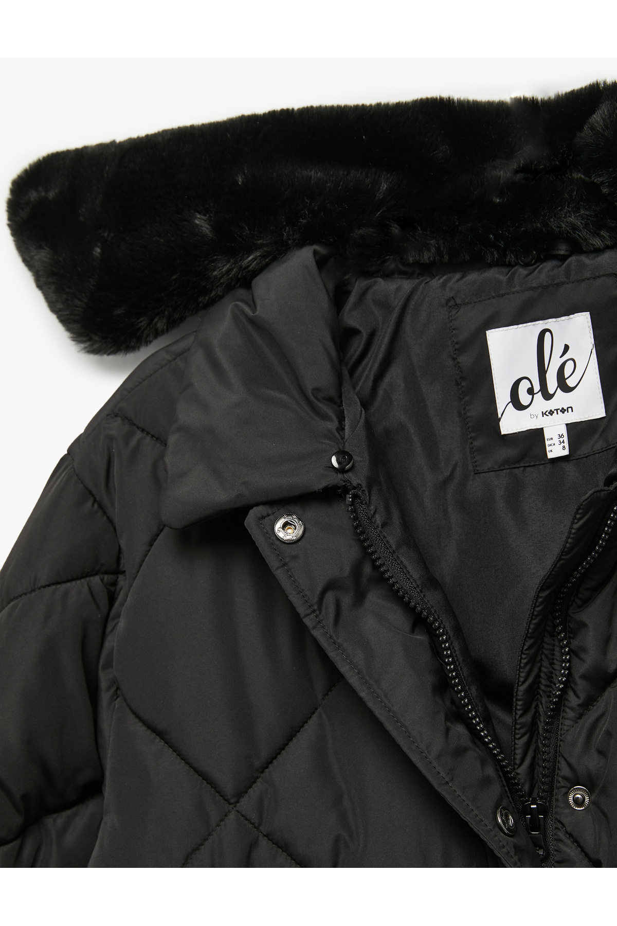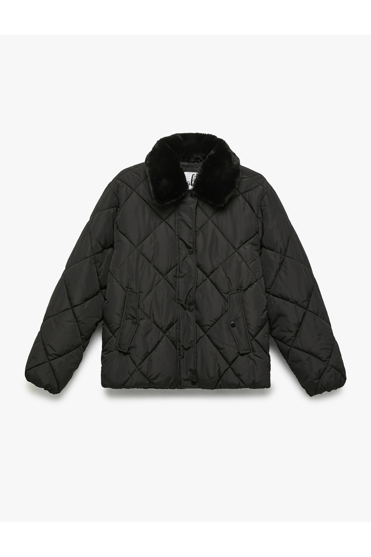 Suni Kürk Yakalı Uzun Kollu Fermuarlı Cepli Kapitone Ceket Suni Kürk Yakalı Uzun Kollu Fermuarlı Cepli Kapitone Ceket 6WAL20039IW 42