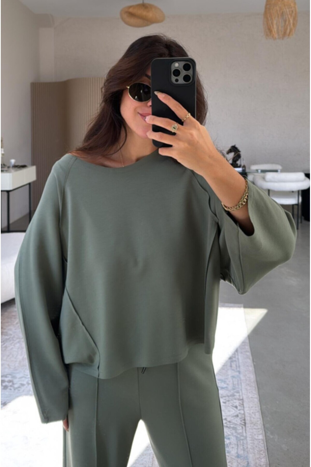 Geniş Yaka Modal Bluz - Palazzo Pantolon Takım Geniş Yaka Modal Bluz - Palazzo Pantolon Takım MRS0200 L/XL