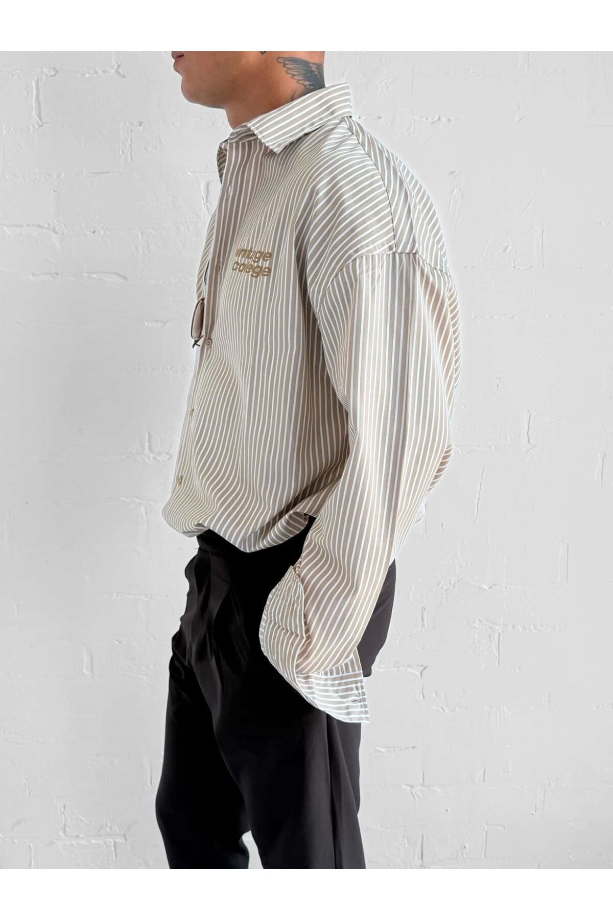 Erkek Oversize Baskılı Uzun Kollu Gömlek Açık Kahve Erkek Oversize Baskılı Uzun Kollu Gömlek Açık Kahve GML.0170 XL